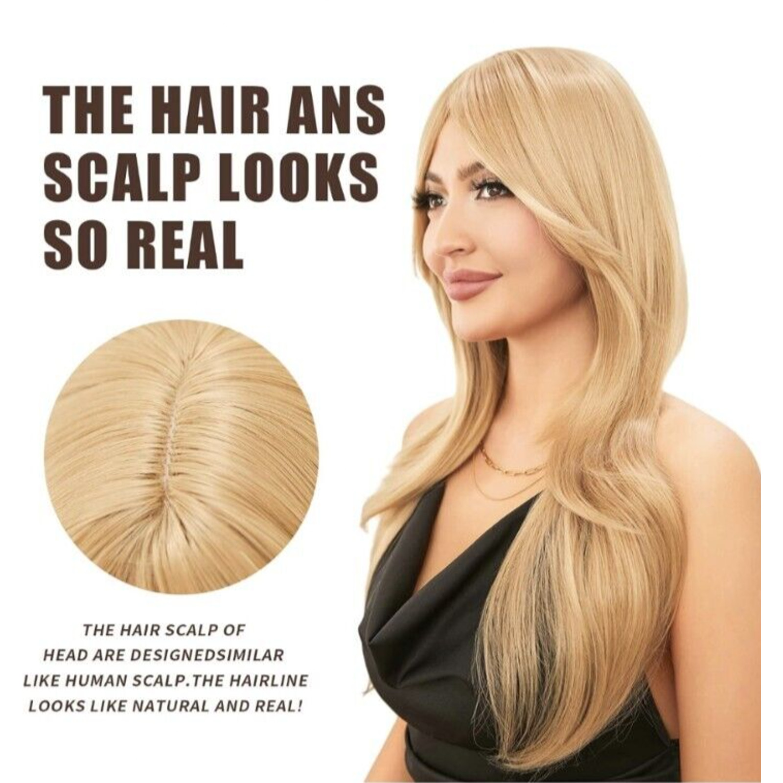 Blonde Hair Wigs with Bangs Long Wavy Synthetic for Women Fanshion Wigs