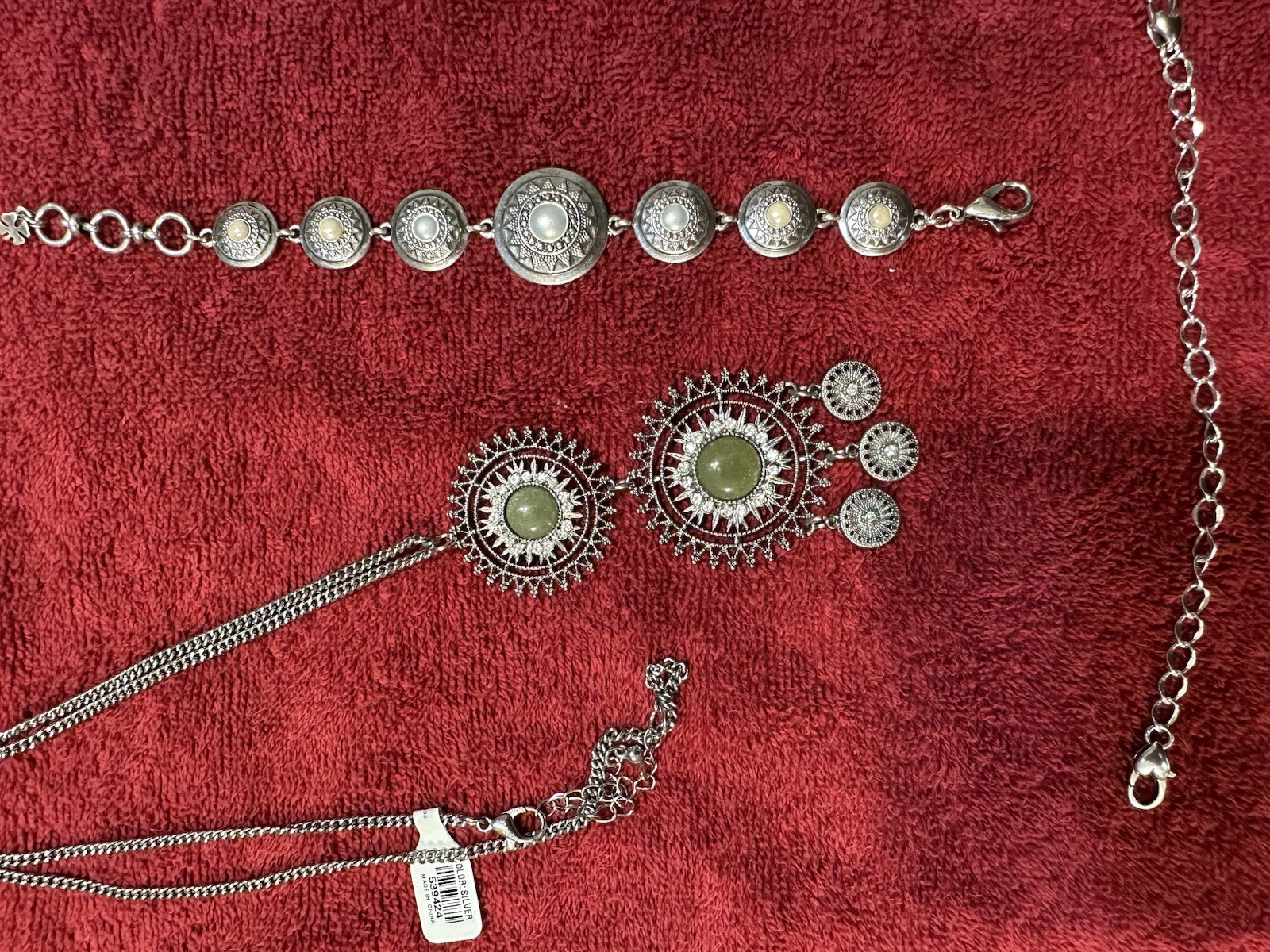 как выглядит Western Concho Necklace, Bracelet Set With Silver Tone Green Stones фото