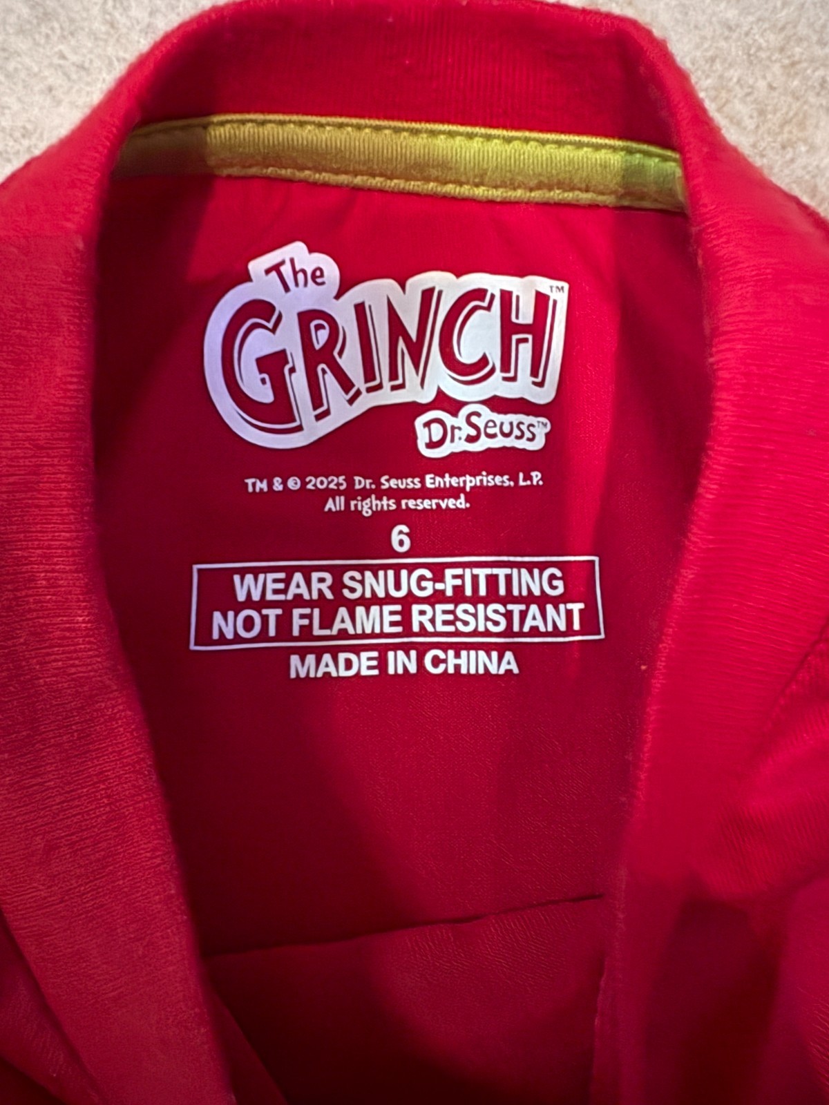 Grinch Mode ON OFF Dr. Seuss The Grinch Long Sleeve Red Pajama Shirt Size 6