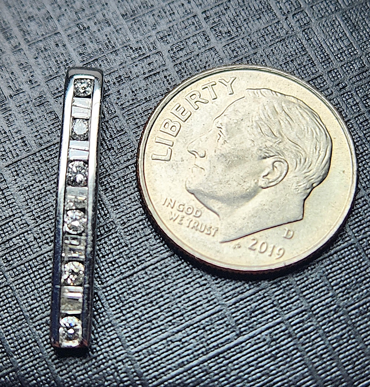 как выглядит 10K White Gold .33ct Round/Baguette Diamond Accent Bar Pendant, 1.37g фото