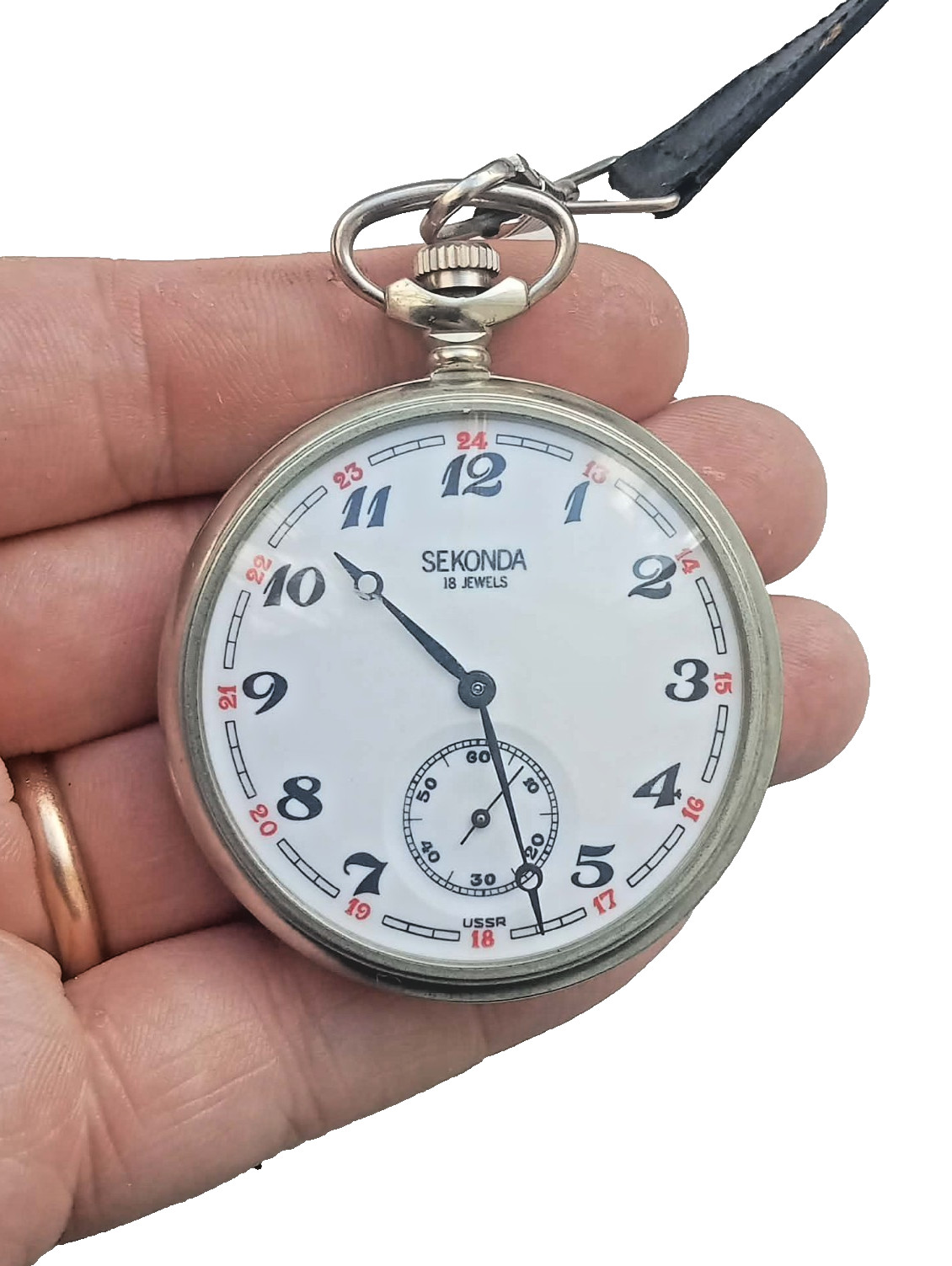 как выглядит Vintage Sekonda USSR Pocket Watch 18 Jewels Railway Train Design with Strap фото