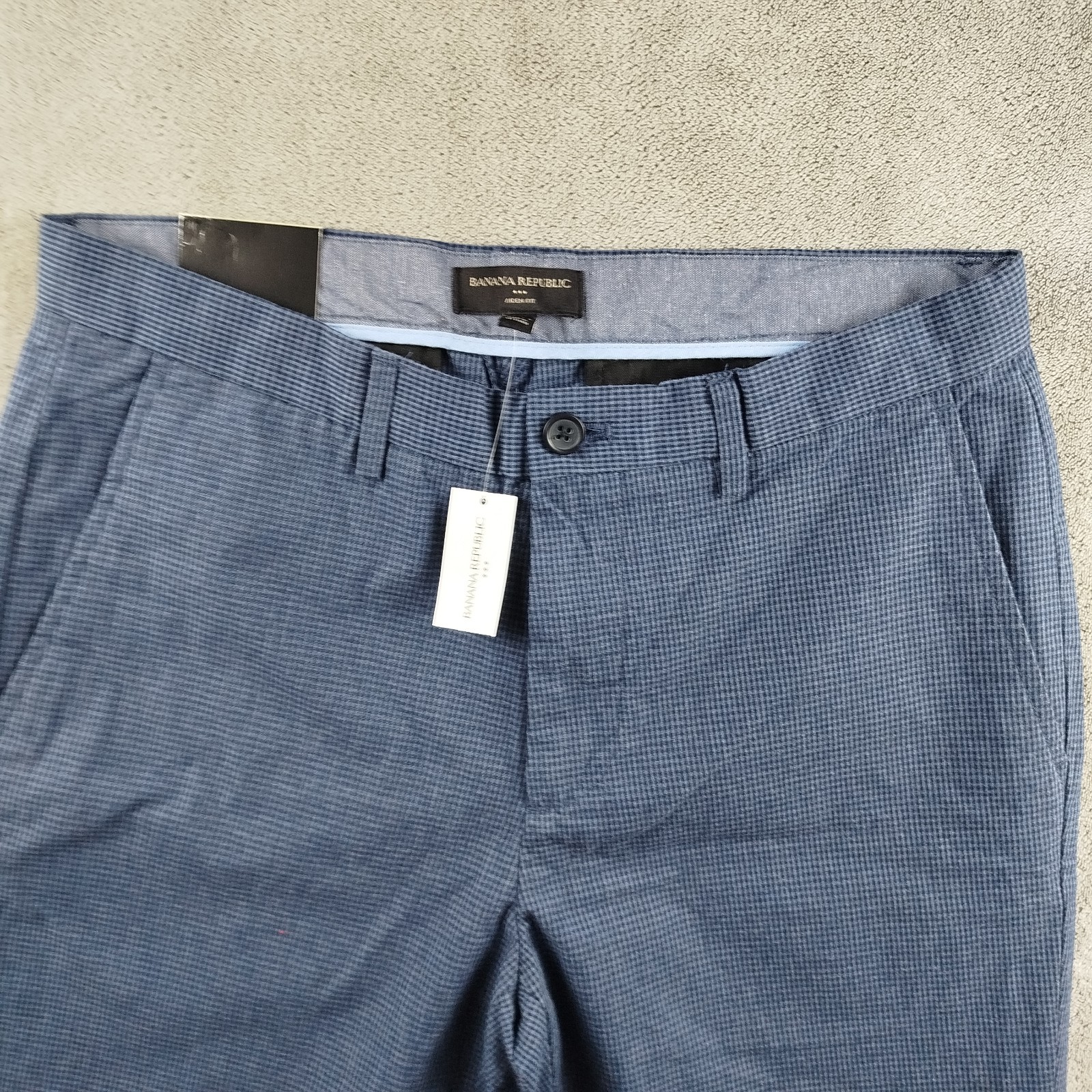 как выглядит Banana Republic Pants Mens Size 32x32 Aiden Chino Stretch Slim Fit Plaid Blue фото