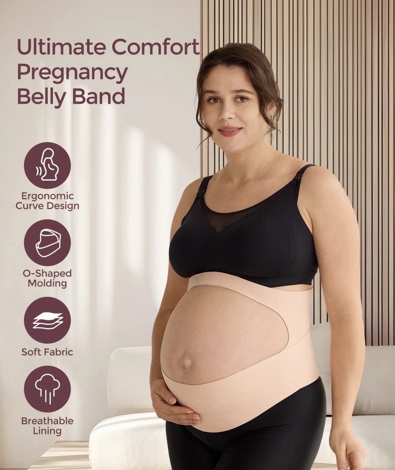 как выглядит Momcozy Pregnancy Belly Band MEDIUM Invisible Comfort Maternity Belt Oyster Pink фото
