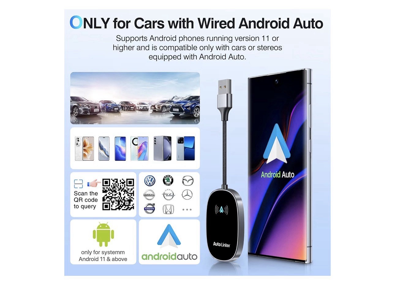 Android Auto Wireless Adapter for Cars w/ Built in Wired- Black