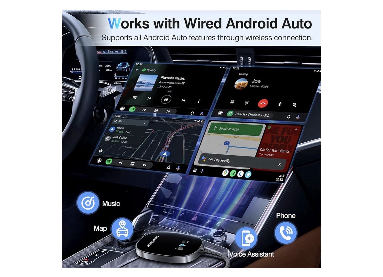 как выглядит Android Auto Wireless Adapter for Cars w/ Built in Wired- Black фото