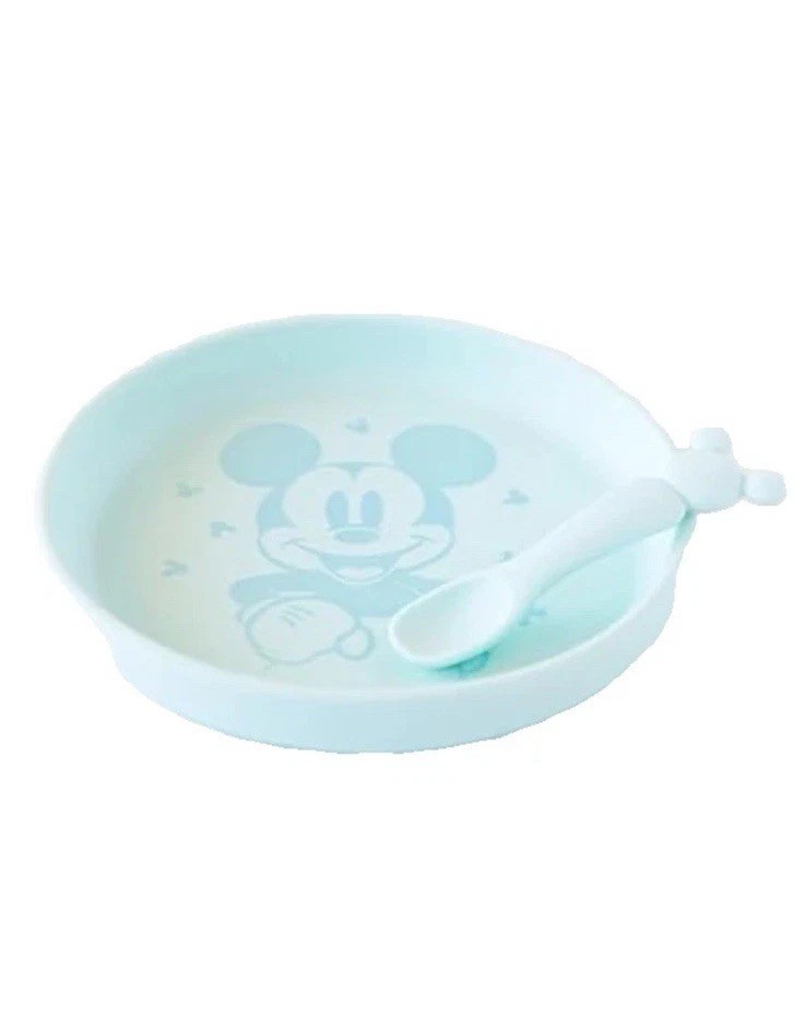 DISNEY Bumpkins MICKEY MOUSE Baby Silicone Plate Spoon Set Blue 6 Months
