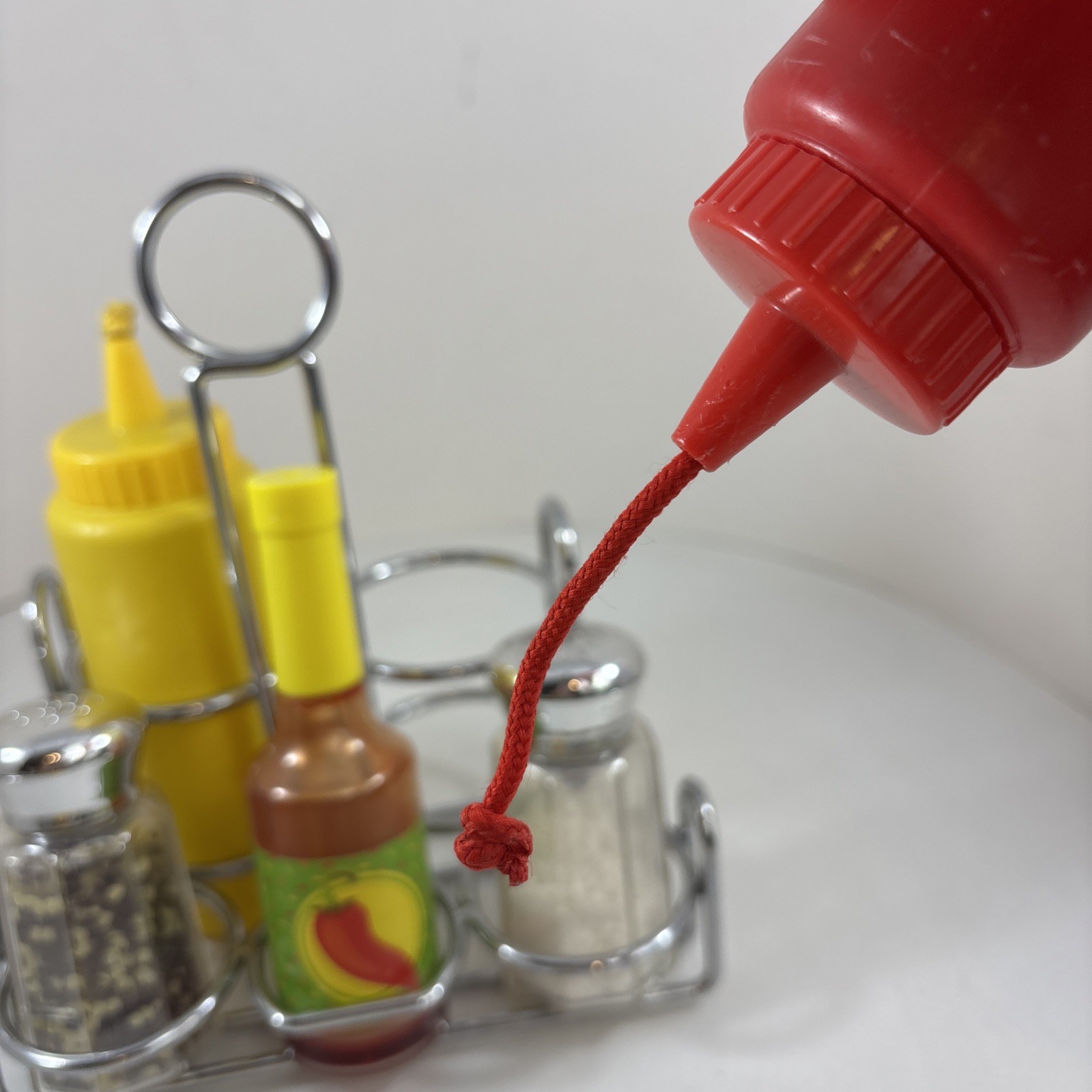 как выглядит Melissa Doug Pretend Play Food Condiment Set Caddy Salt Pepper Ketchup Set фото