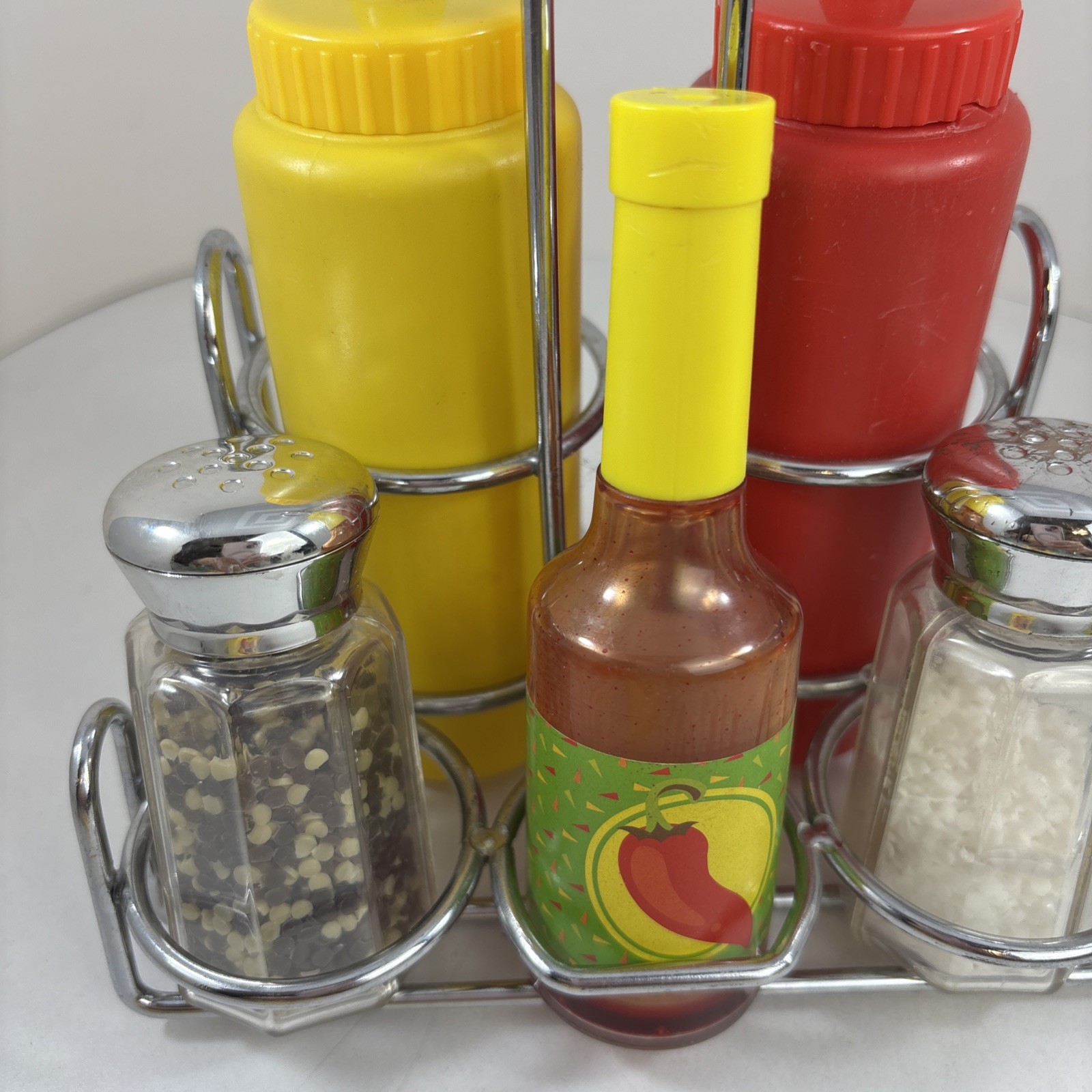 Melissa Doug Pretend Play Food Condiment Set Caddy Salt Pepper Ketchup Set