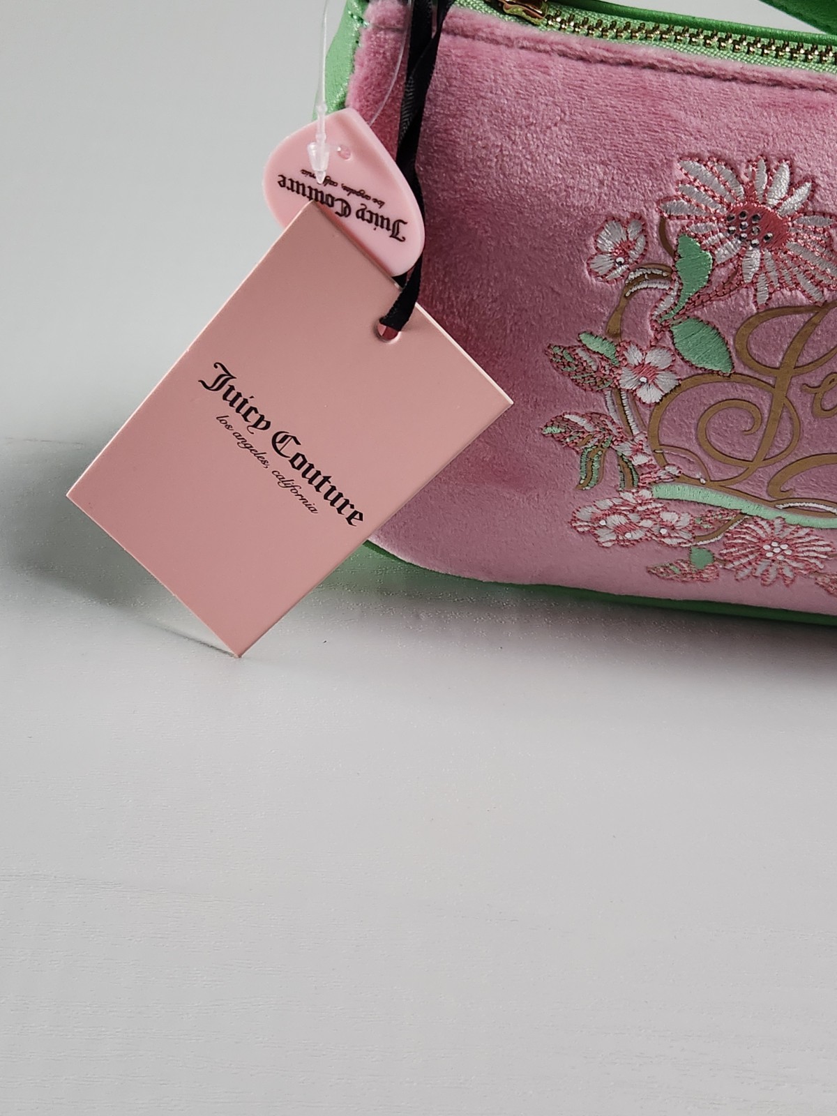 как выглядит NWT Juicy Couture Velour Juicy In Bloom Green Pink Wristlet Clutch Bag фото