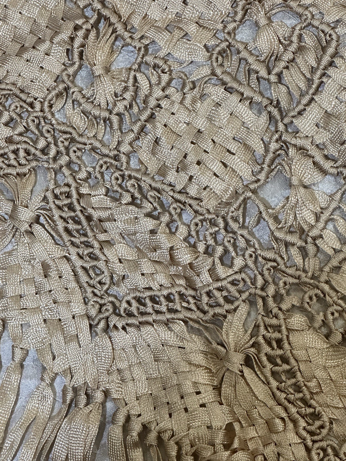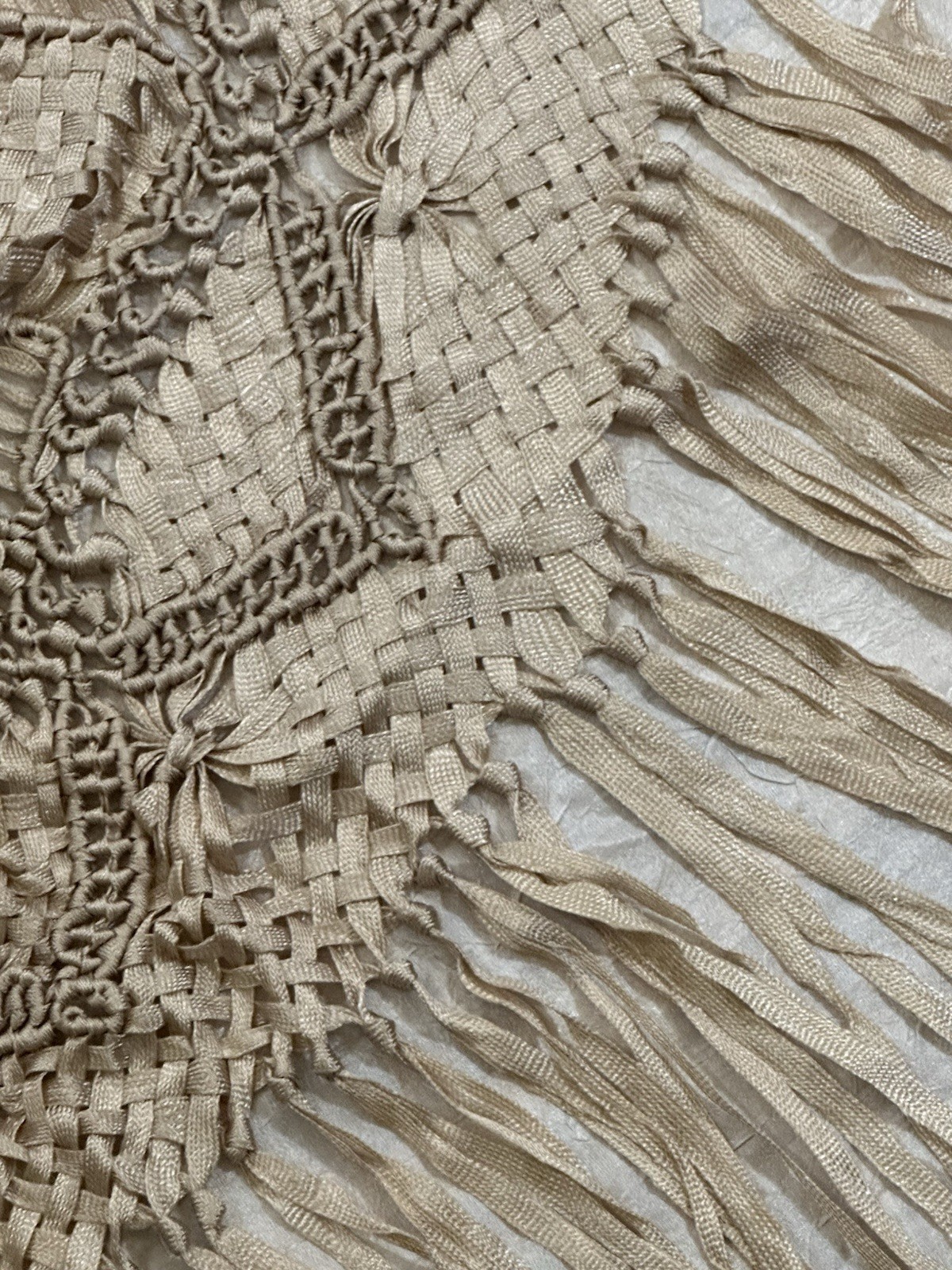 Vintage Early 1900 s Satin Ribbon Macrame Fringe Shawl