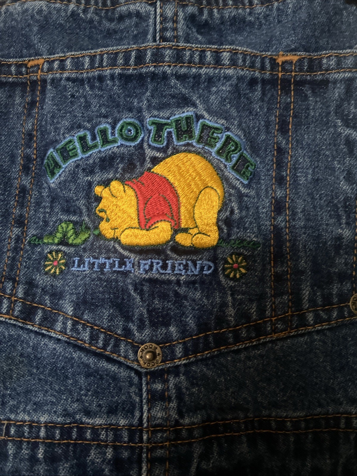 • Vintage Disney Winnie The Pooh Blue Denim Women Overalls Embroidered Bib Medium