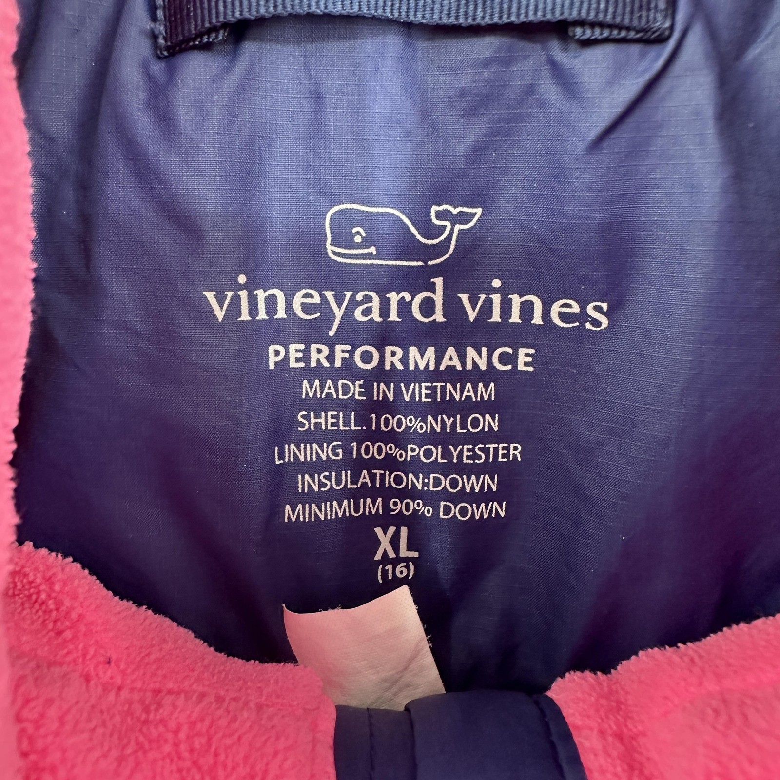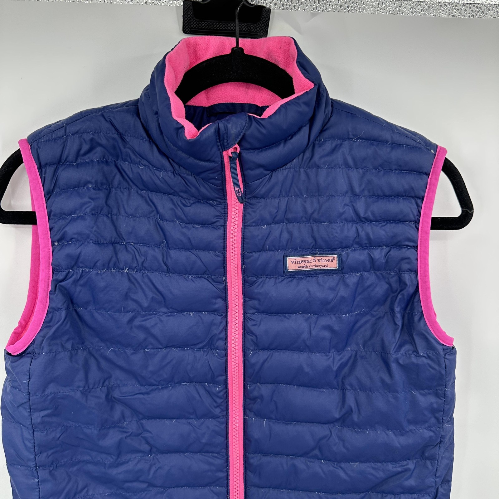 Vineyard Vines Vest Girls XL Navy Pink Performance Down Puffer Fleece Lined