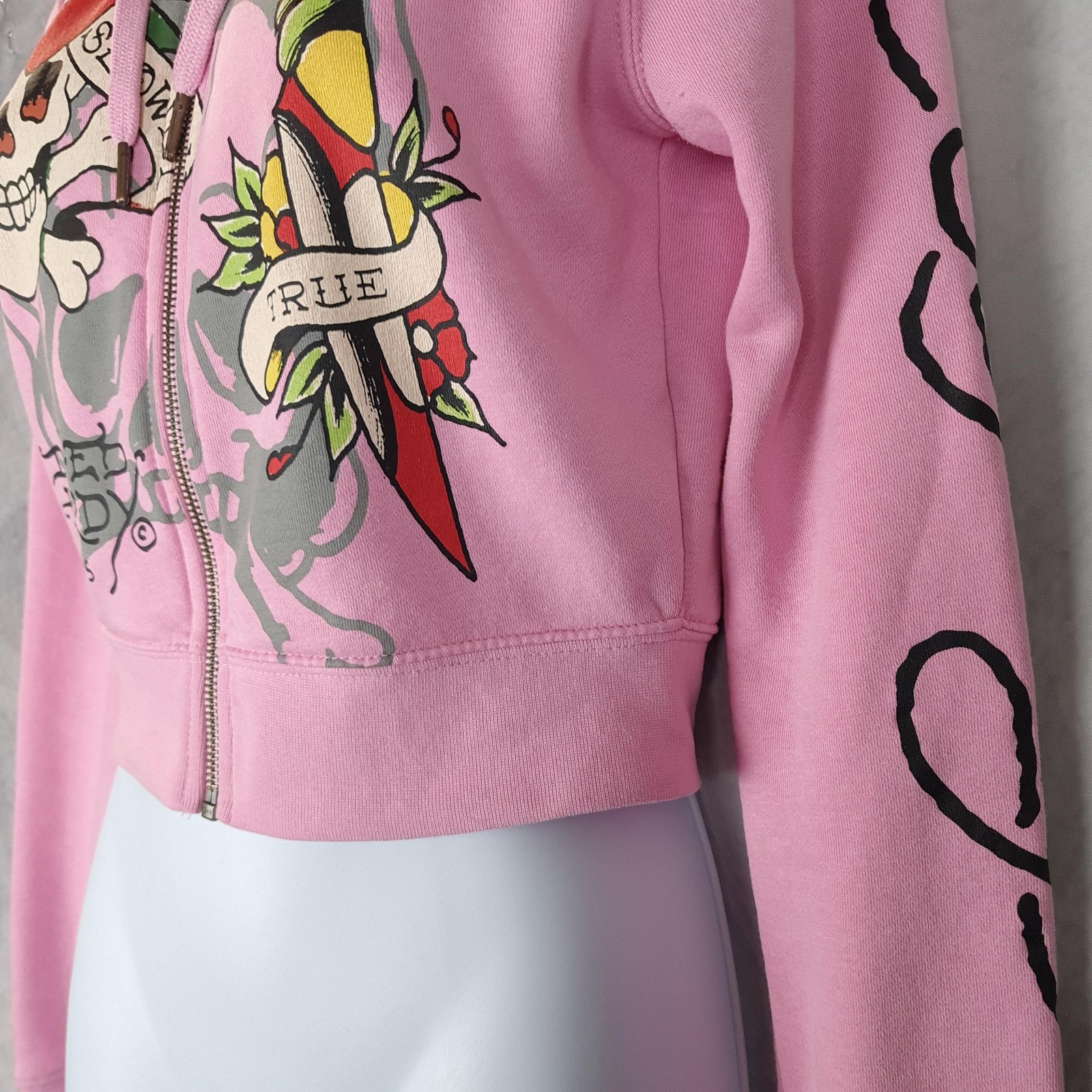 как выглядит Ed Hardy Hoodie Womens Medium Pink Love Kills Tiger Full Zip Cropped Sweatshirt фото