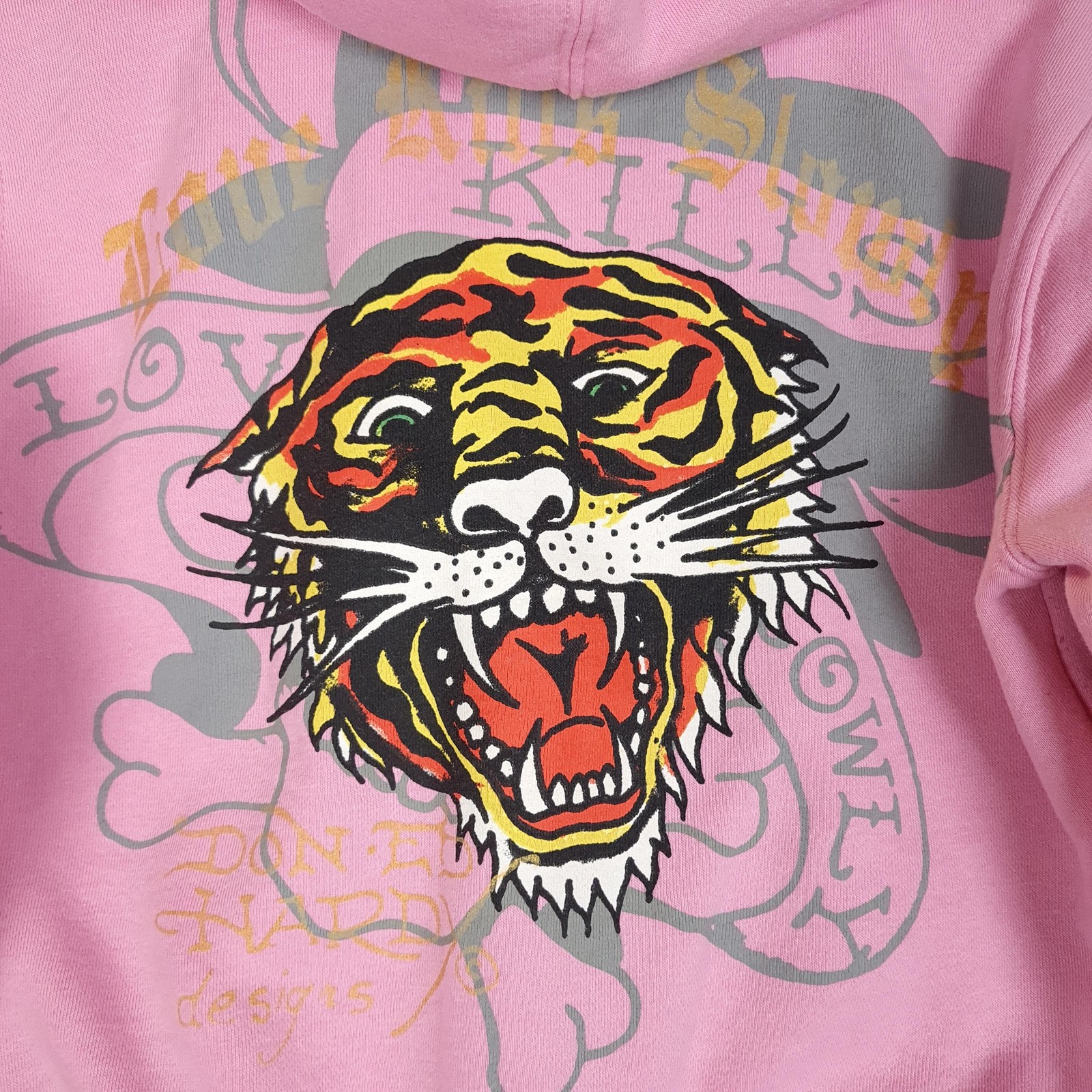 Ed Hardy Hoodie Womens Medium Pink Love Kills Tiger Full Zip Cropped Sweatshirt