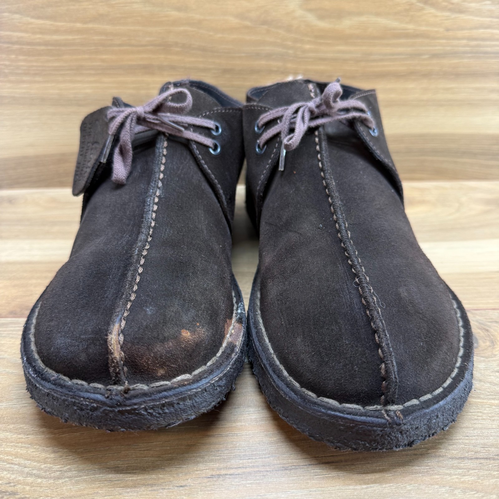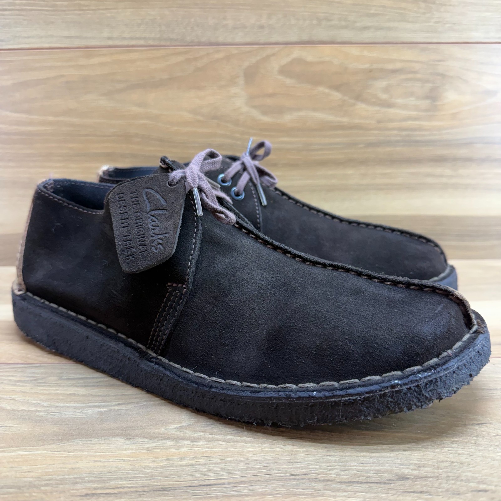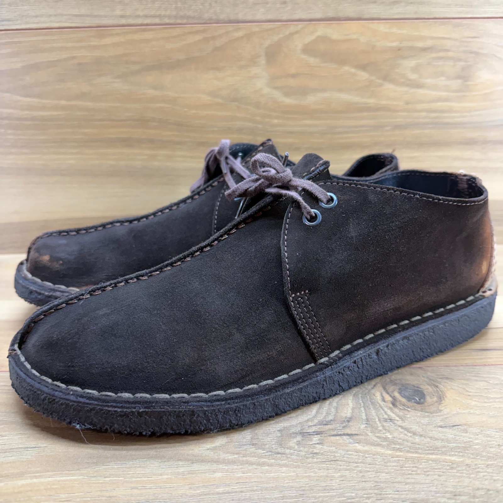 как выглядит Clarks Desert Trek Ankle Boot Mens 11 Dark Brown Suede Split Toe Crepe Soles фото