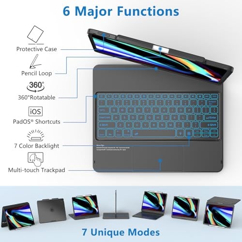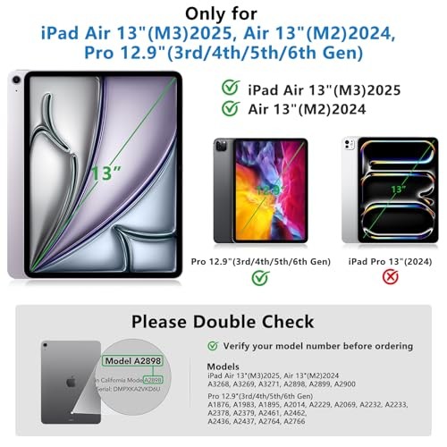 iPad Air 13 Inch Case Keyboard M3 2025 / M2 2024 , iPad Pro 12.9 6th, Black