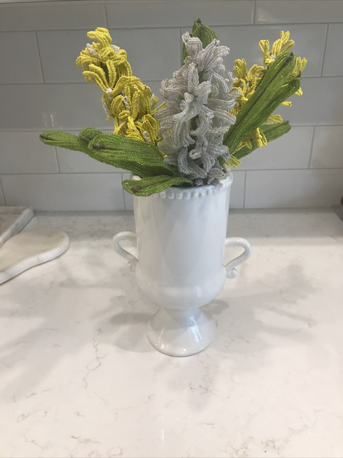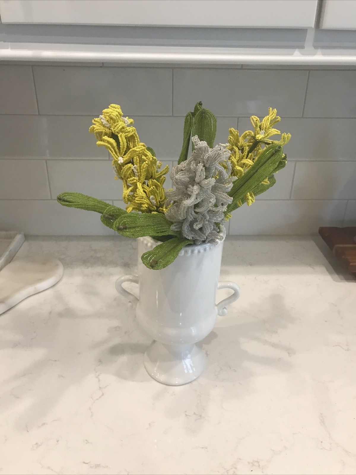 как выглядит vintage French beaded GLASS FLOWERS Hyacinths Set/3 Handmade Gorgeous фото