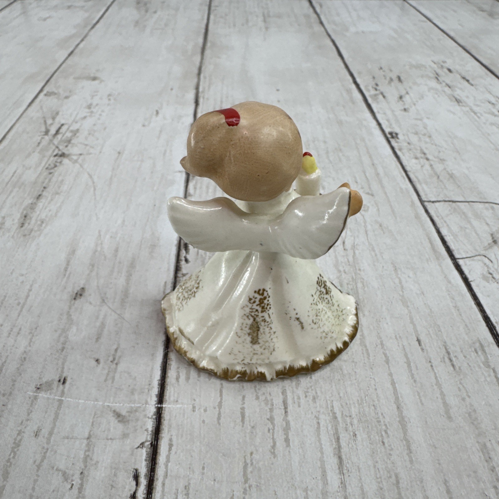 • Vintage Napcoware X-6963 Christmas Angel 3" Figurine with Candle White Gold