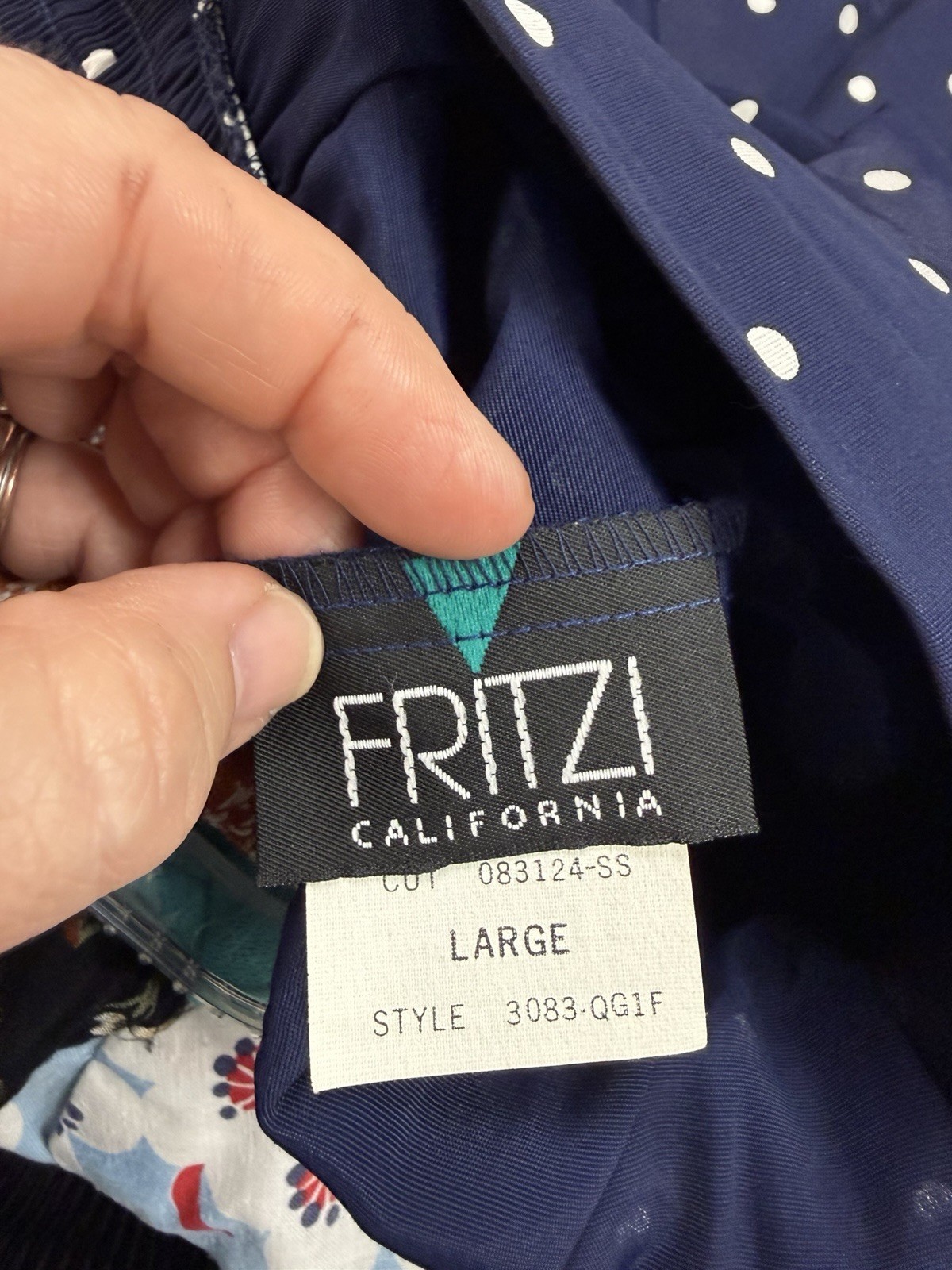 как выглядит Vintage 90s Fritzi of California Navy Blue Polka Dot Maxi Skirt Size L фото