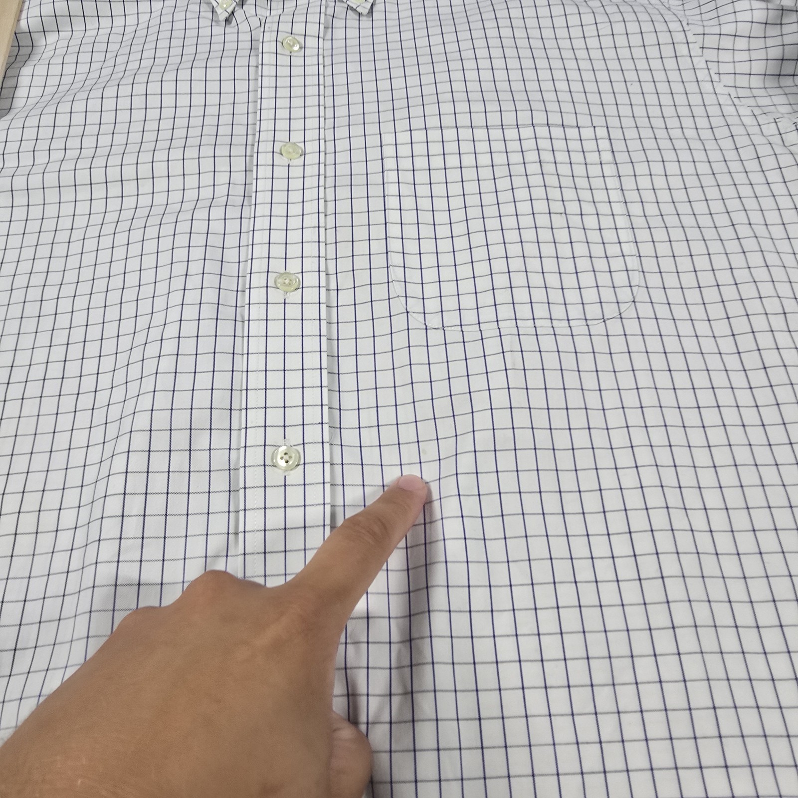 как выглядит Brooks Brothers Shirt Mens 17-6/7 Extra Large White Blue Grid Non Iron Cotton фото