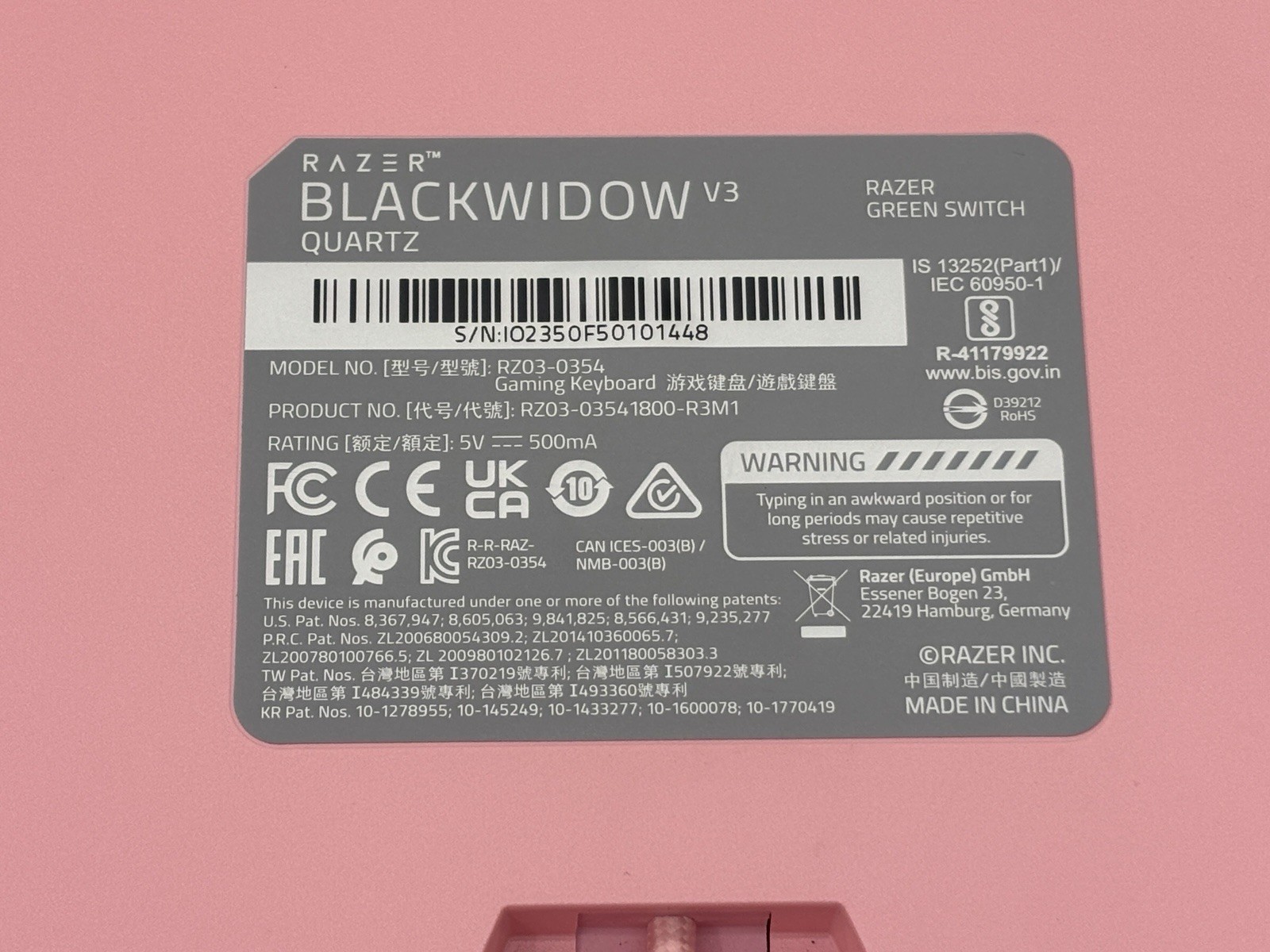 Razer BlackWidow V3 Quartz Pink RGB Mechanical Keyboard Green Switch RZ03-0354