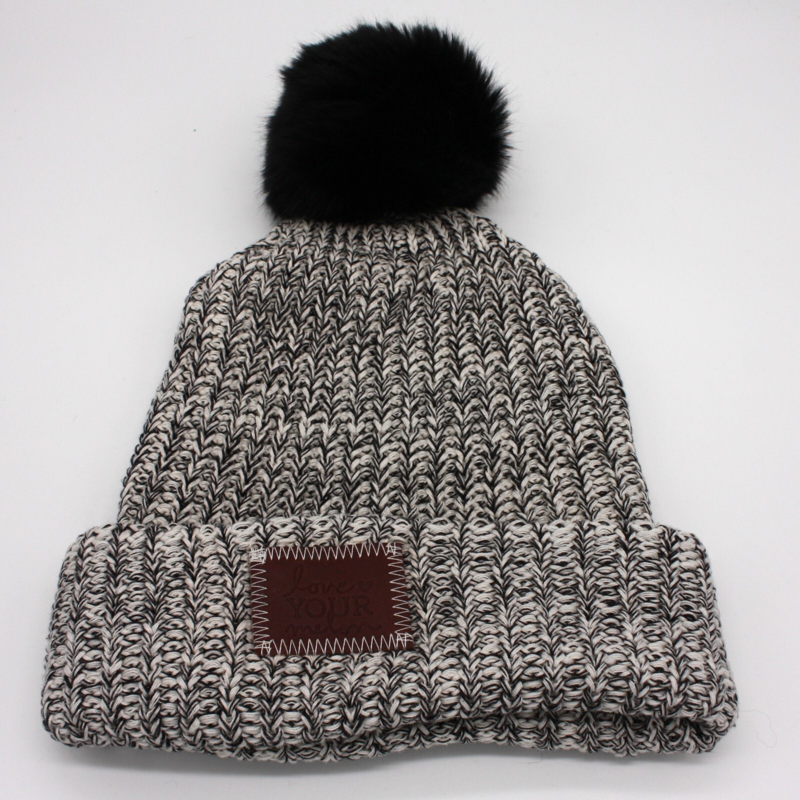 Love Your Melon Women's Black Speckled Pom Beanie Hat One Size New in Package