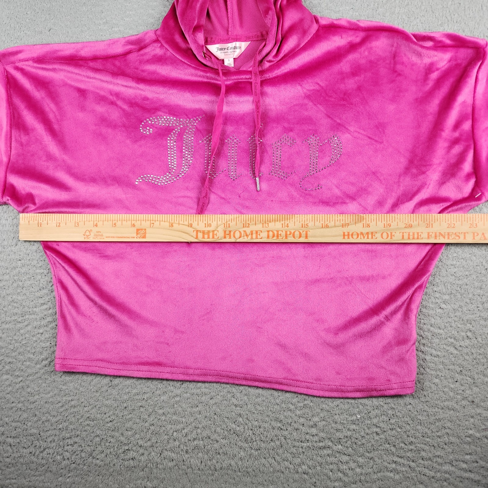 Juicy Couture Hoodie Womens Small Pink Velvet Cropped Rhinestones Pajama