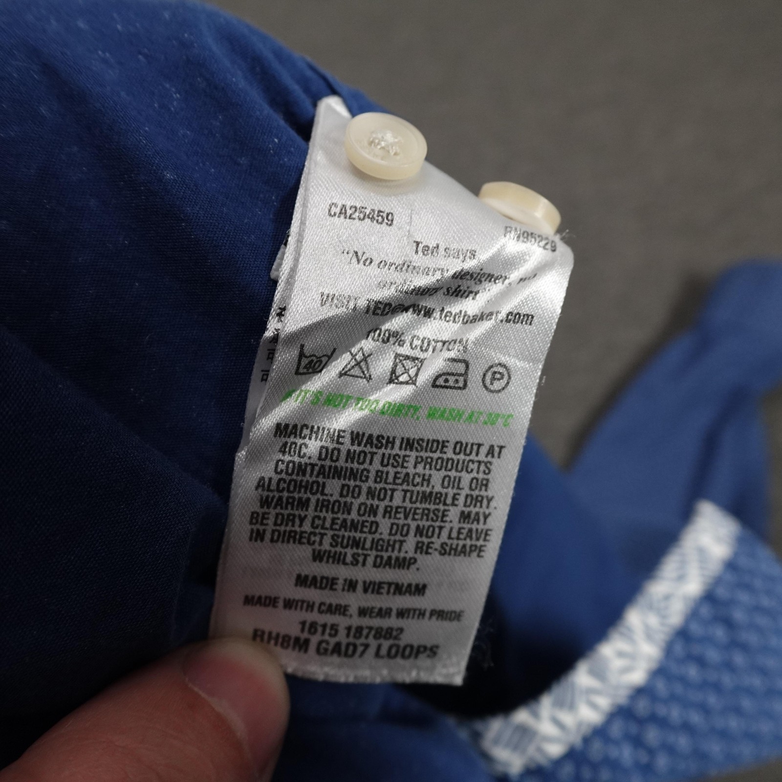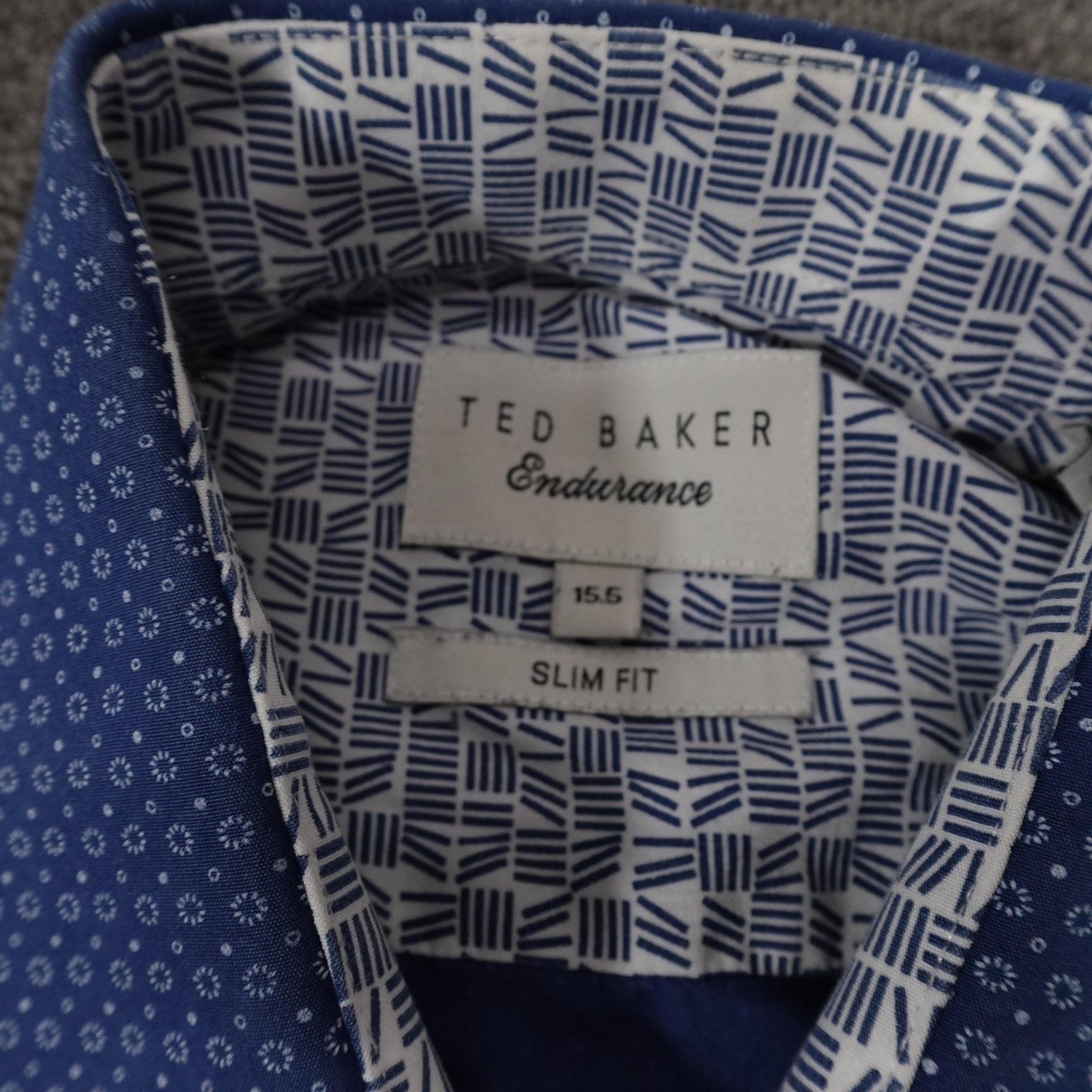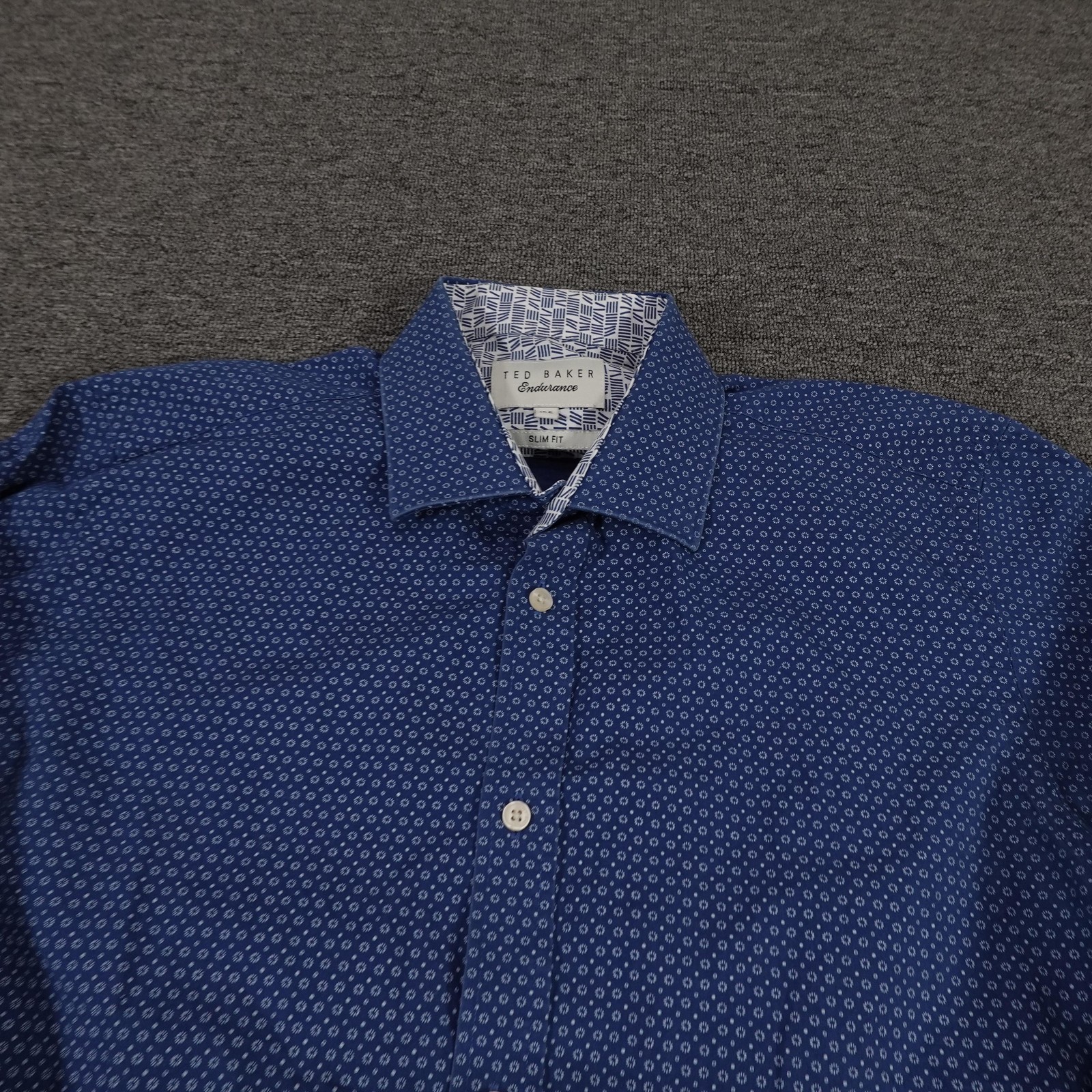 как выглядит Ted Baker Endurance Dress Shirt Mens 15.5 Blue Geometric Slim Fit Long Sleeve фото