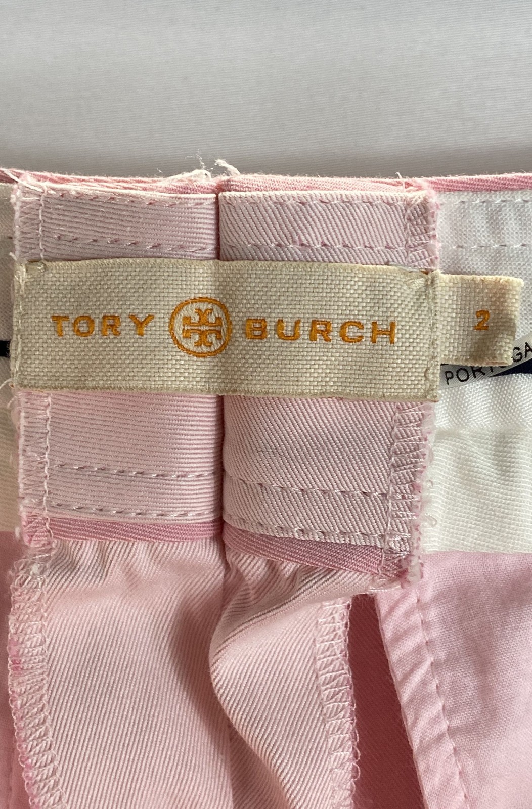 Tory Burch Women's Pink Cotton Viscose Wide Leg Trousers Pants Logo Button Sz 2