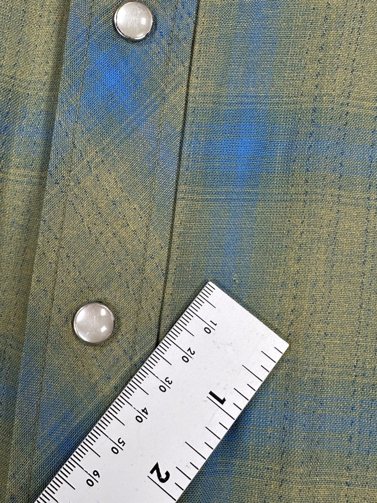 как выглядит 1960s Vintage H Bar C Flannel Shadow Print Gabardine Western Pearl Snap Shirt фото