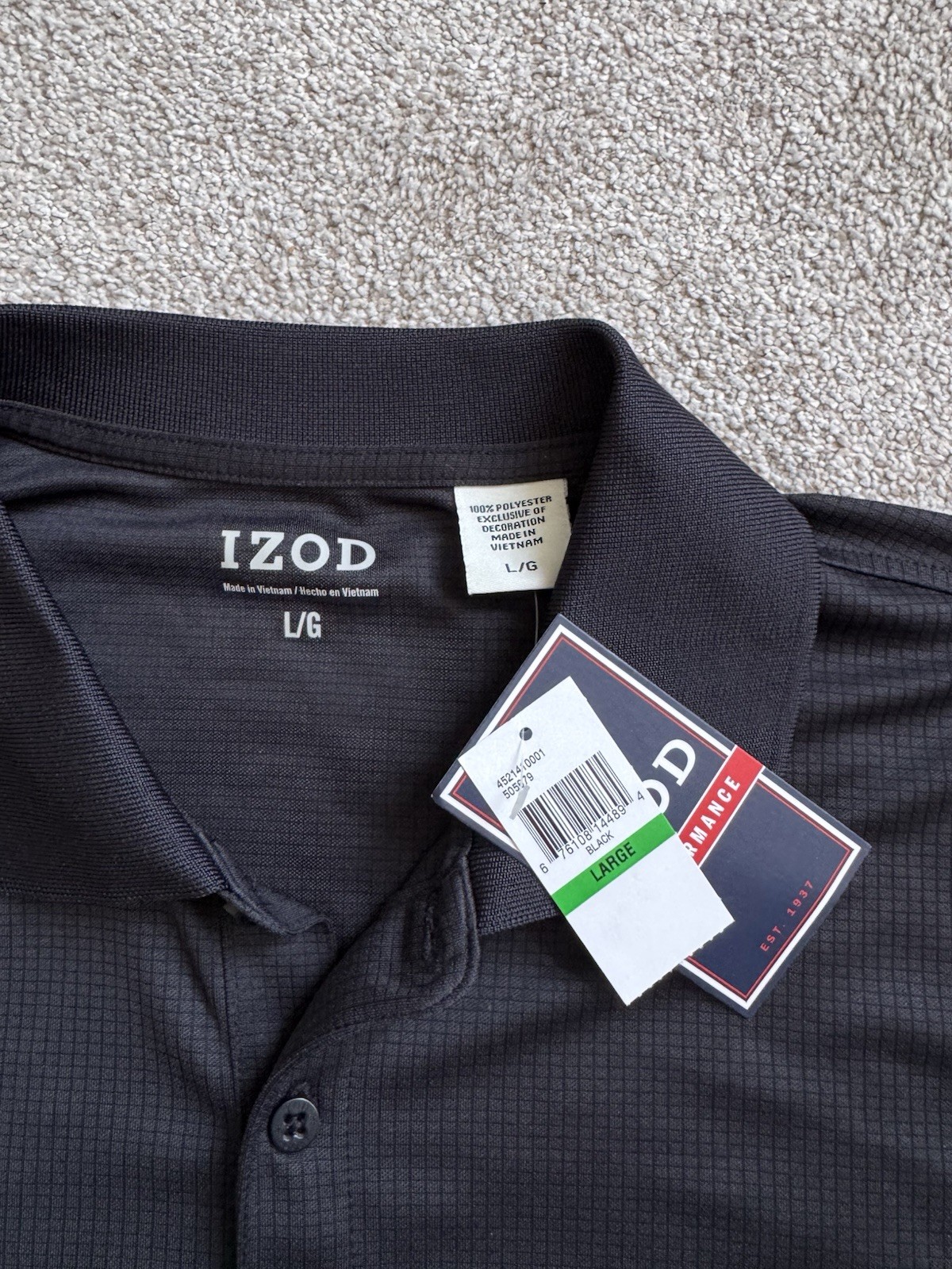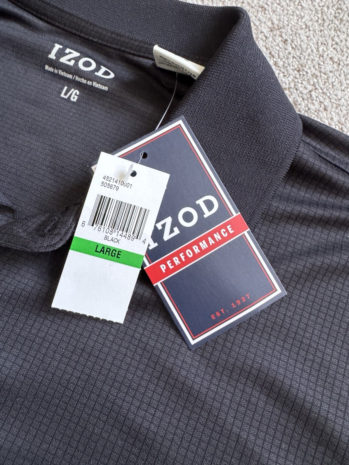 как выглядит NWT Men s Izod Performance Short Sleeve Polo Sz Large Wicking Sun Control Black фото