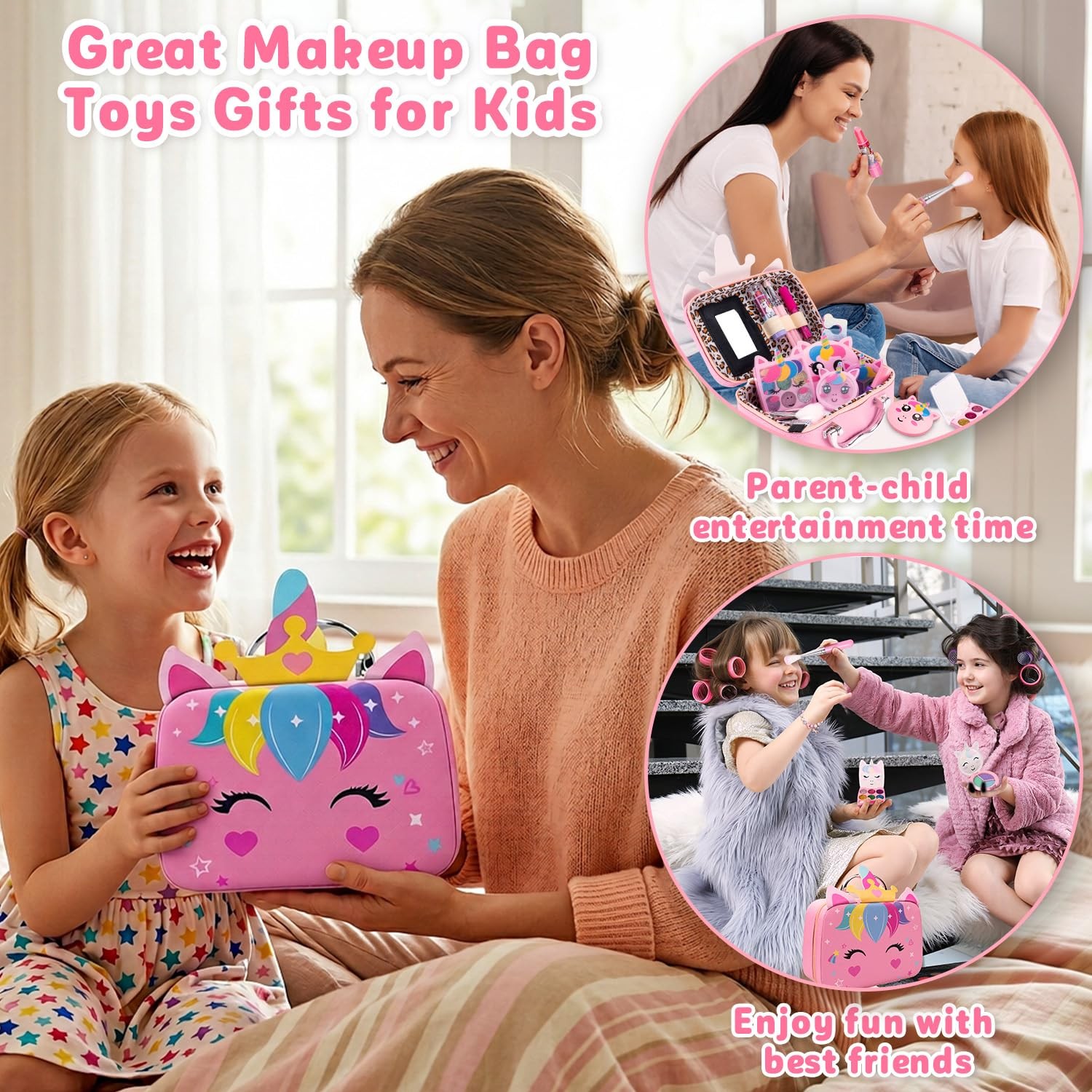 Kids Makeup Kit for Girl - Princess Toys Real Washable Make child-size, Pink