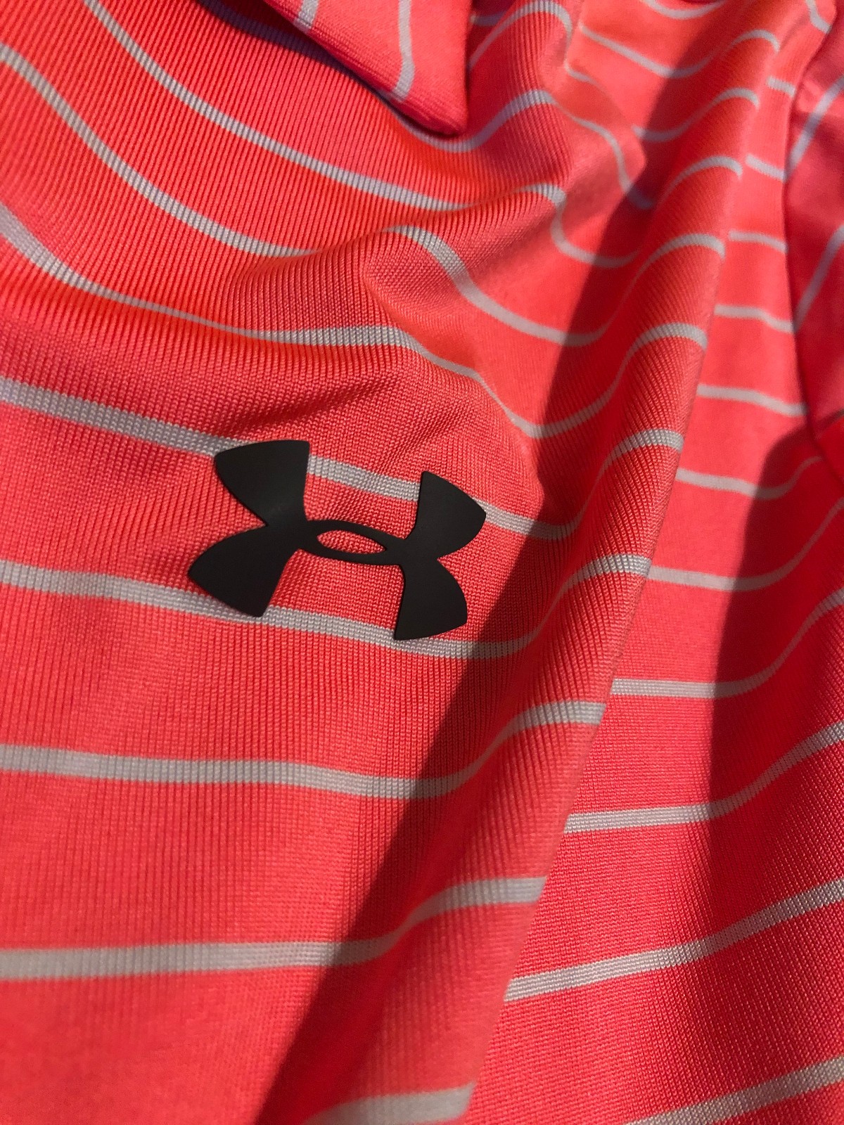 Under Armour Golf SS Men's Polo Shirt Large L Pink Striped The Playoff Polo