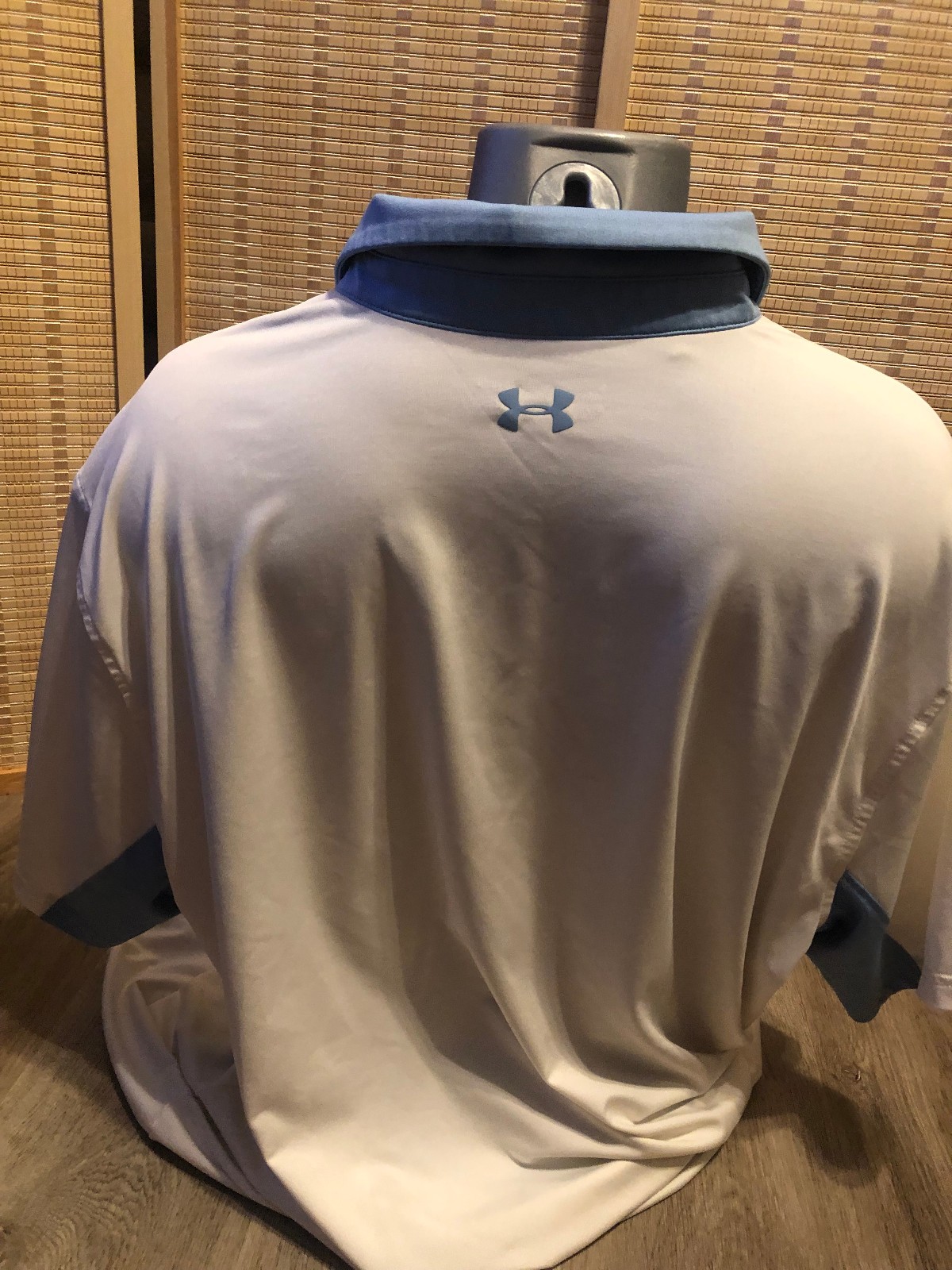 как выглядит Under Armour Golf SS Mens Polo Shirt Loose White with Blue Stripe 2XL XXL H841 фото