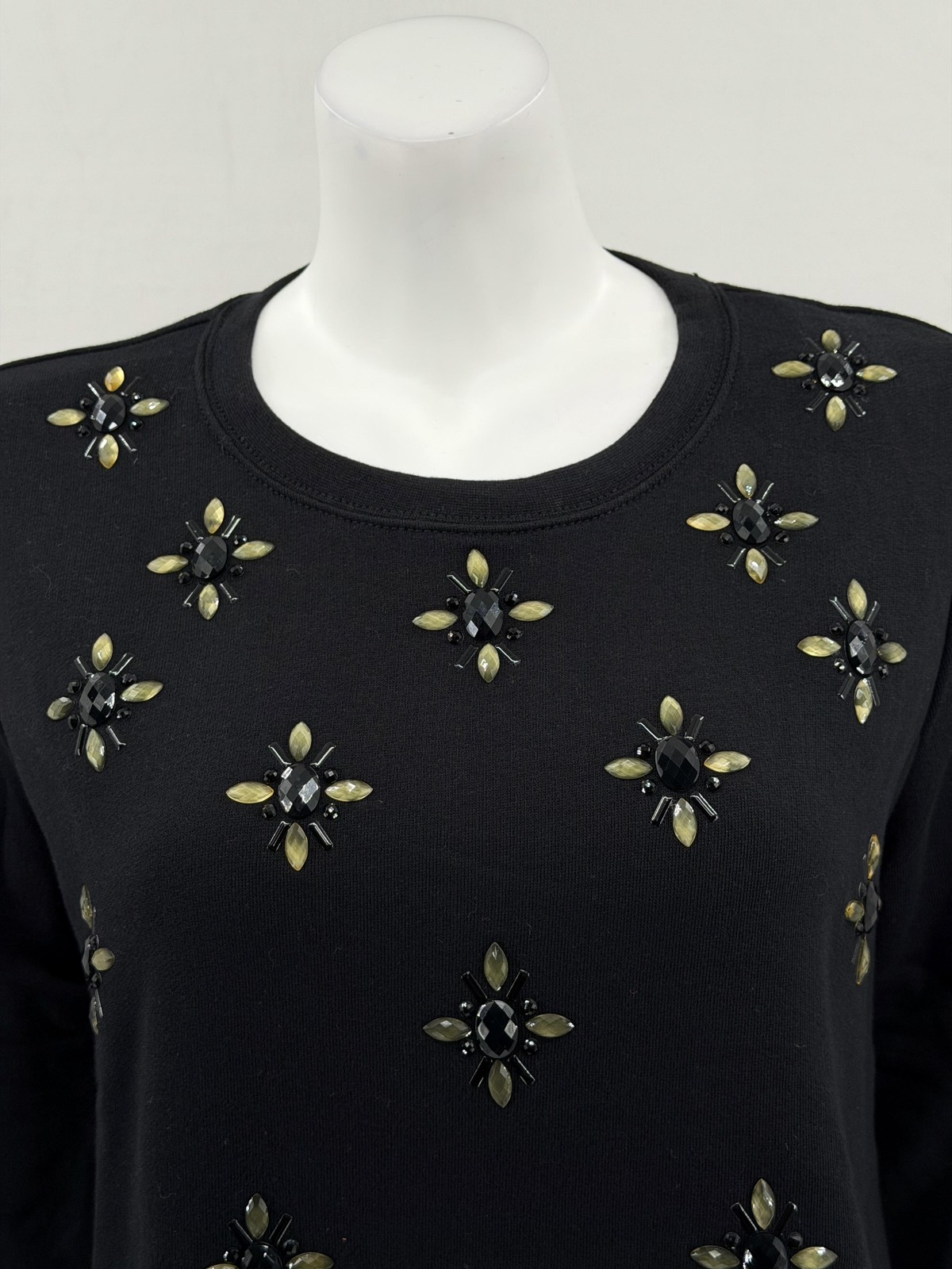 Kate Spade Sweatshirt Womens Medium Black Do Wonders Embellished Preppy Designer