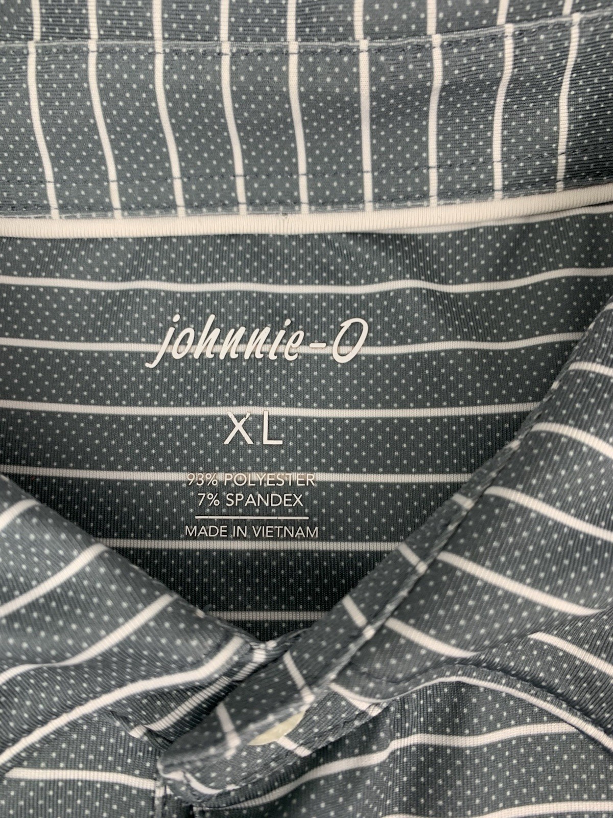 как выглядит JOHNNIE-O PERFORMANCE GOLF POLO SHIRT, GRAY STRIPED, STRETCH, MEN S SIZE XL фото