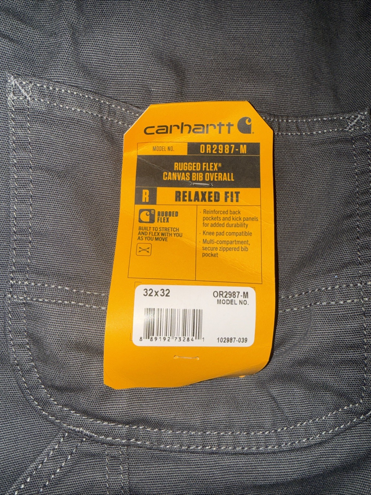 Carhartt Rugged Flex Canvas Bib Overall 32x32 Relaxed Fit OR2987-M