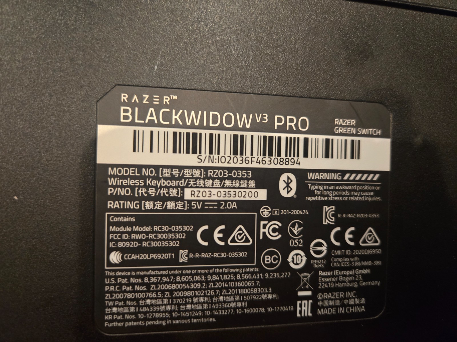 Модель: Razer BlackWidow V3 Pro