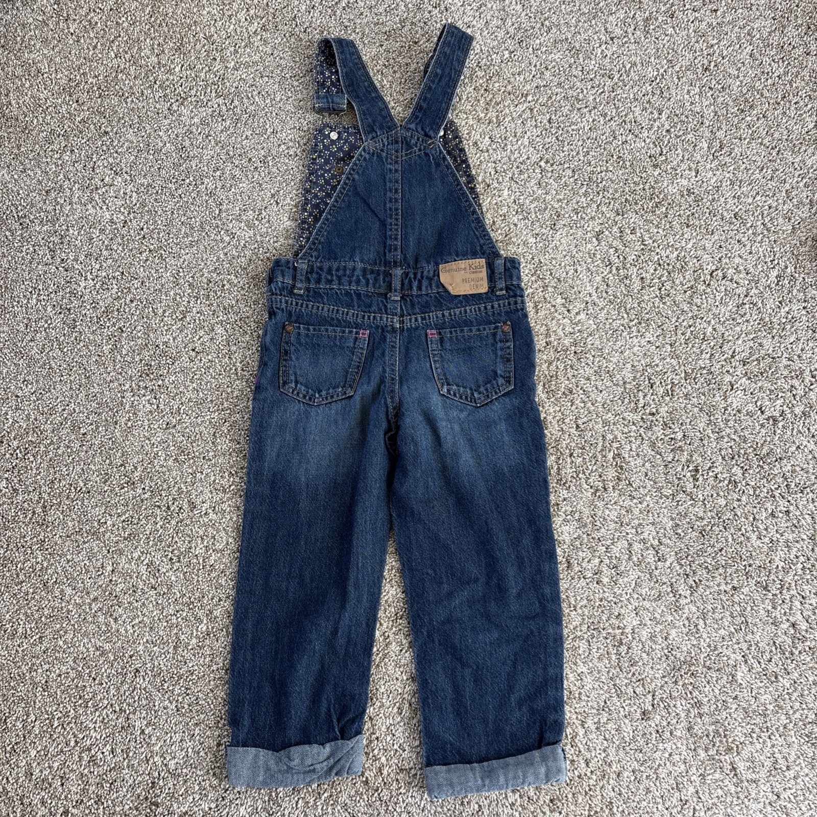 как выглядит Vtg Osh Kosh Genuine Kids Toddlers 3T Rainbow Blue Denim Jean Bib Overalls фото