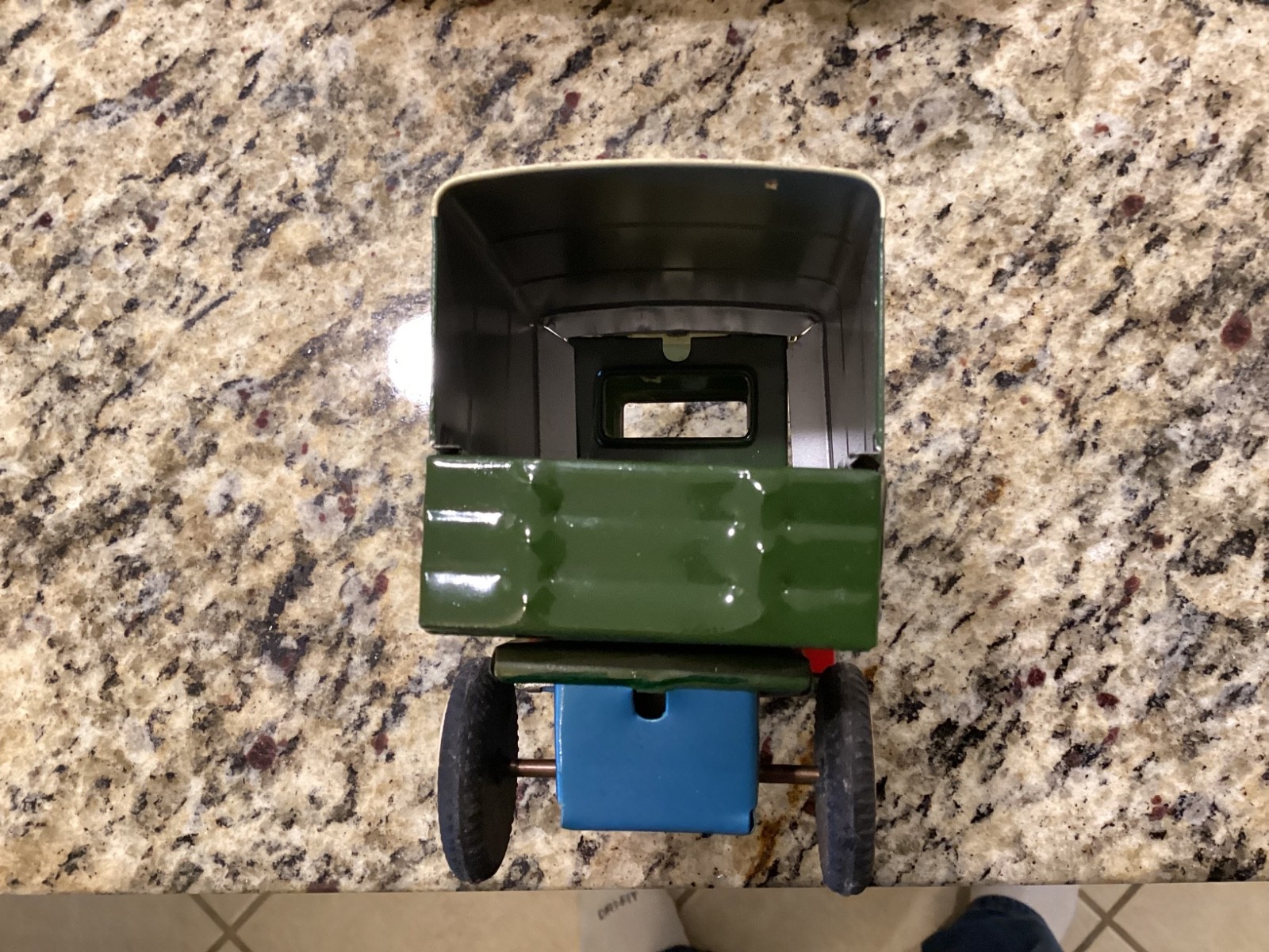 как выглядит Vintage Japan Tin Friction Rail way Toy Truck W/Box missing one wheel фото