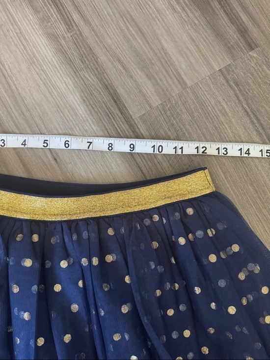 как выглядит Mini Boden Girls Tulle Metallic Midi Skirt 11-12 navy blue polka dots фото