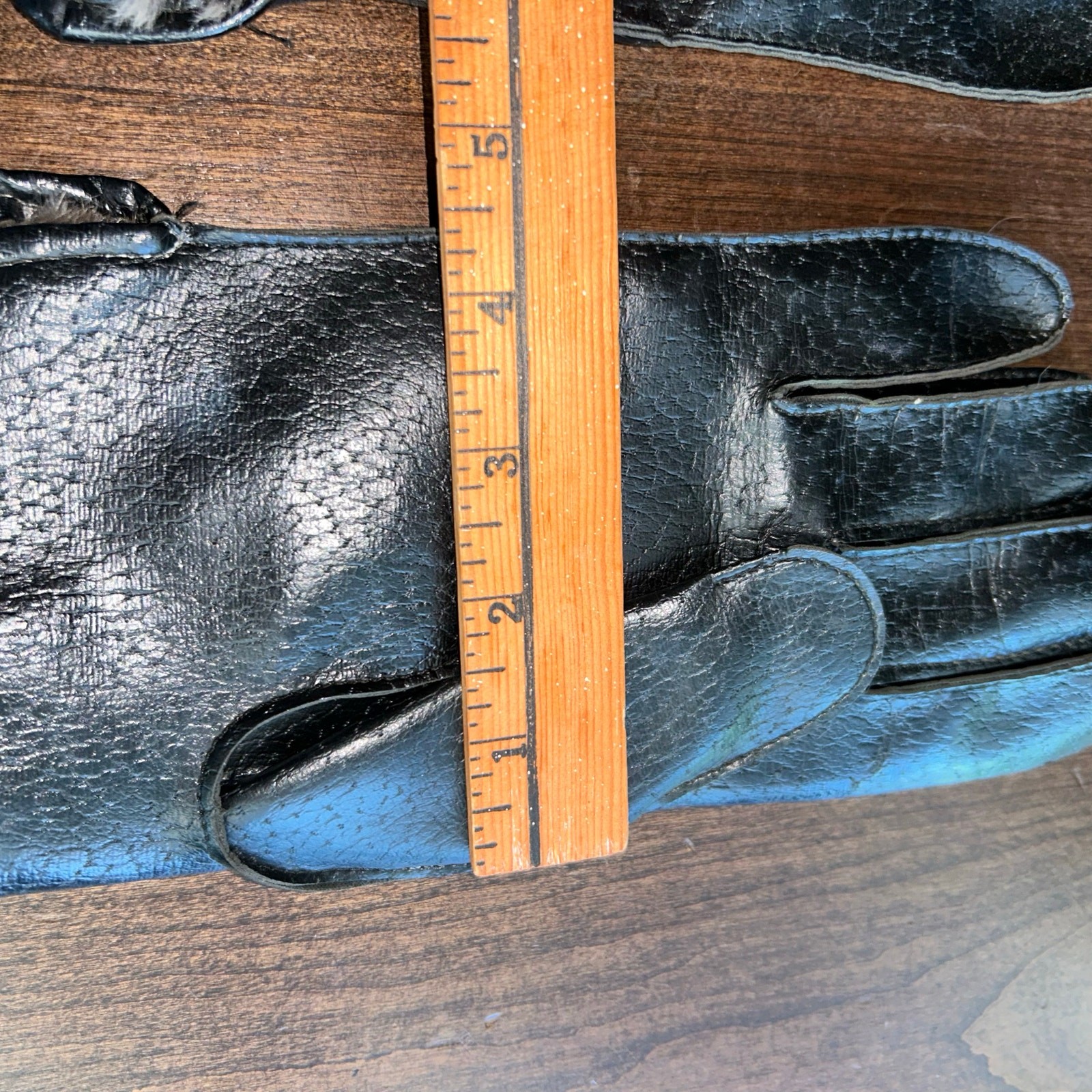 как выглядит Vintage Fur lined peccary embossed leather gloves Large фото