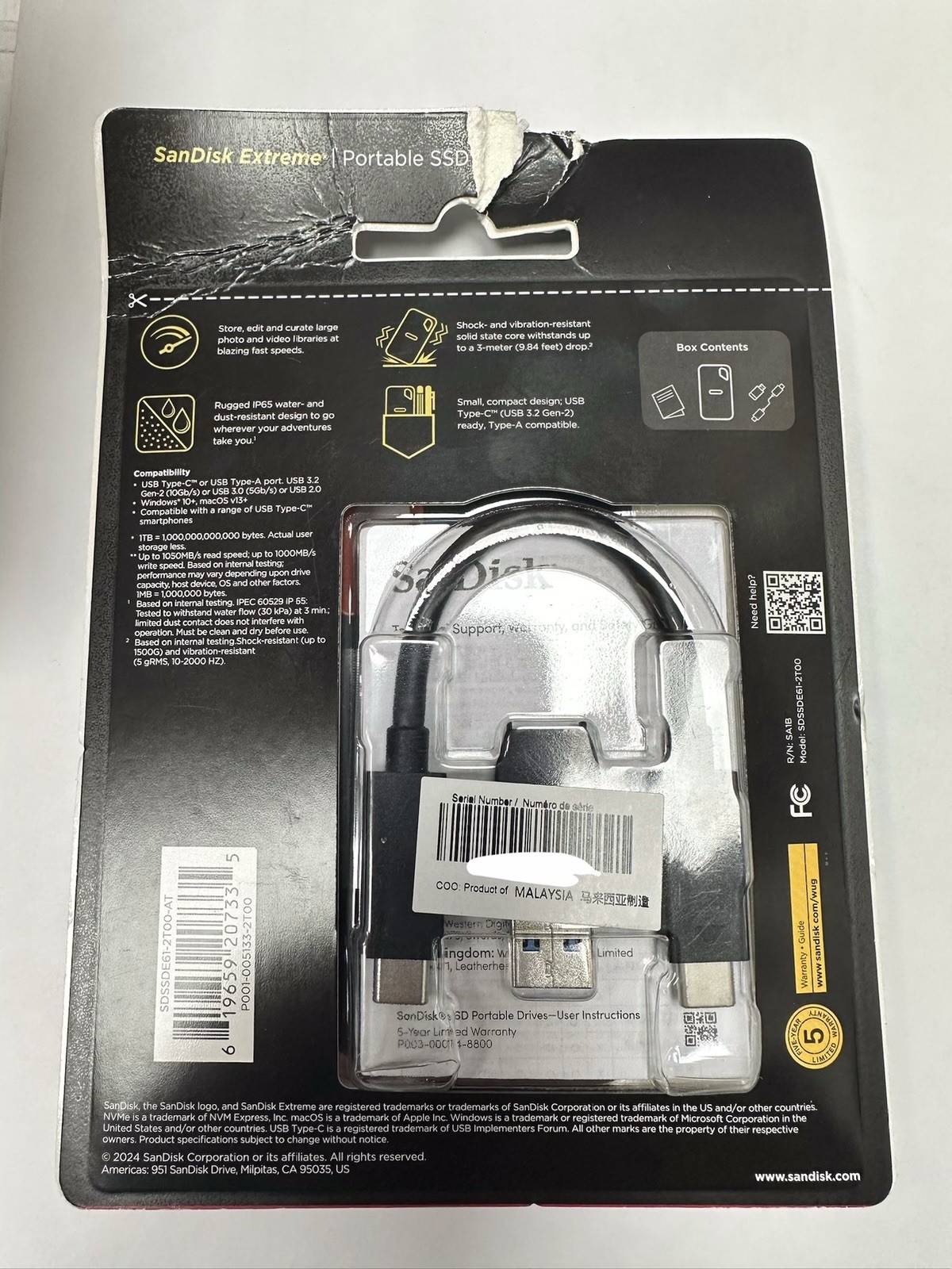 SanDisk extreme portable SSD 2TB SDSSDE61-2TOO-AT BRAND NEW