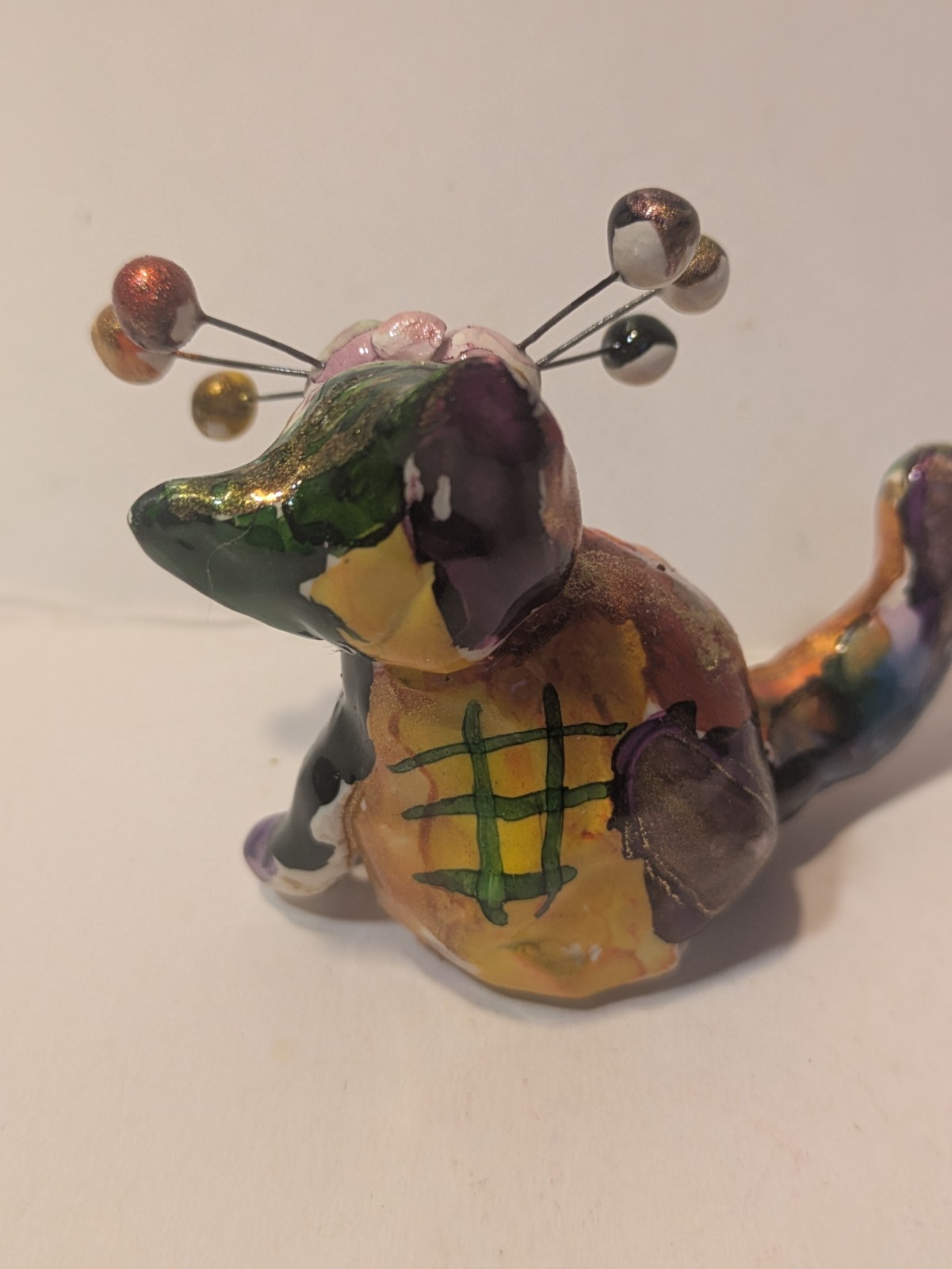 Shiny, Tiny Toshi. Multicolor WhimsiClay mini Cat , Amy Lacombe original