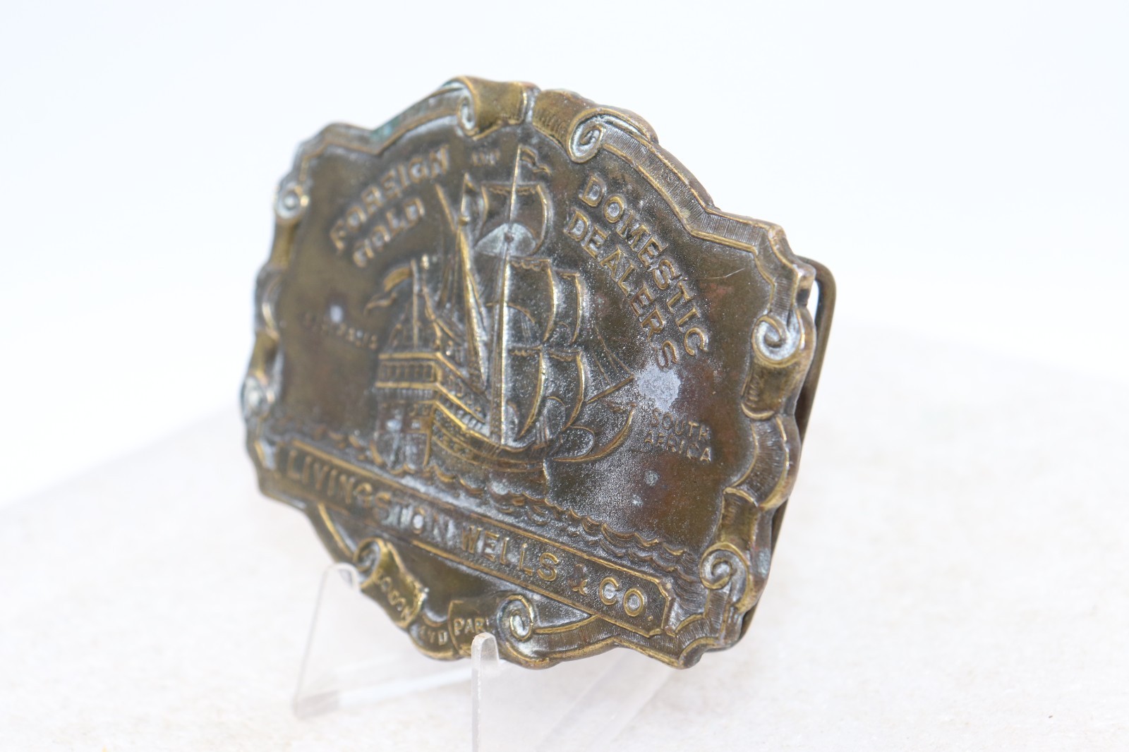 как выглядит Vintage Foreign Gold Domestic Dealers, Livingston Wells Co. Belt Buckle фото