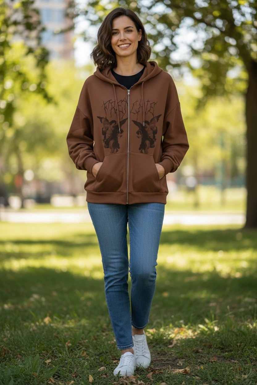 как выглядит Women s Hoodie Graphic Brown Sz M фото