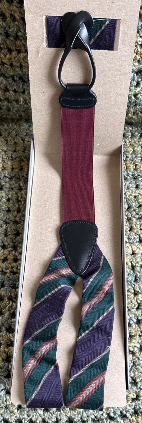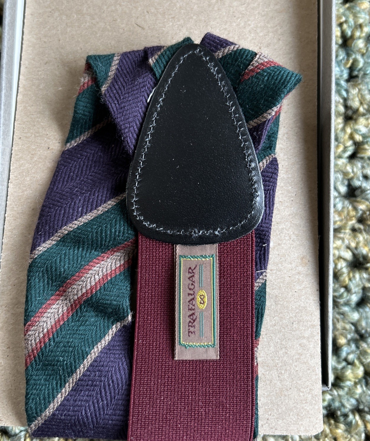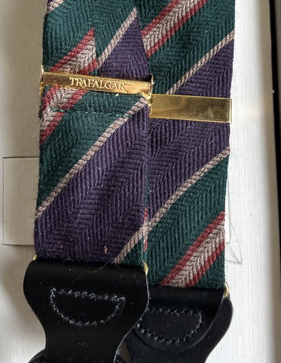 Vintage Trafalgar NOS Silk/Leather Suspenders Braces Stripes New In Package