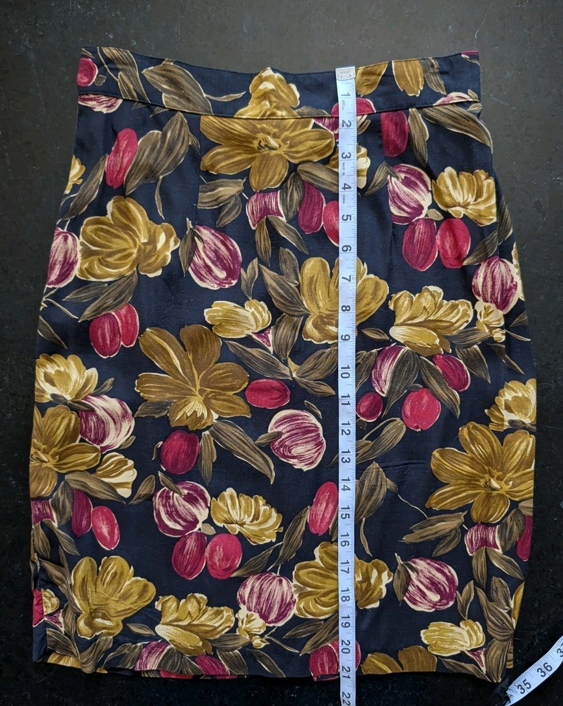 как выглядит VTG 90s Rampage Products Rayon Mini Skirt Abstract Tan Pink Black Floral Print 7 фото