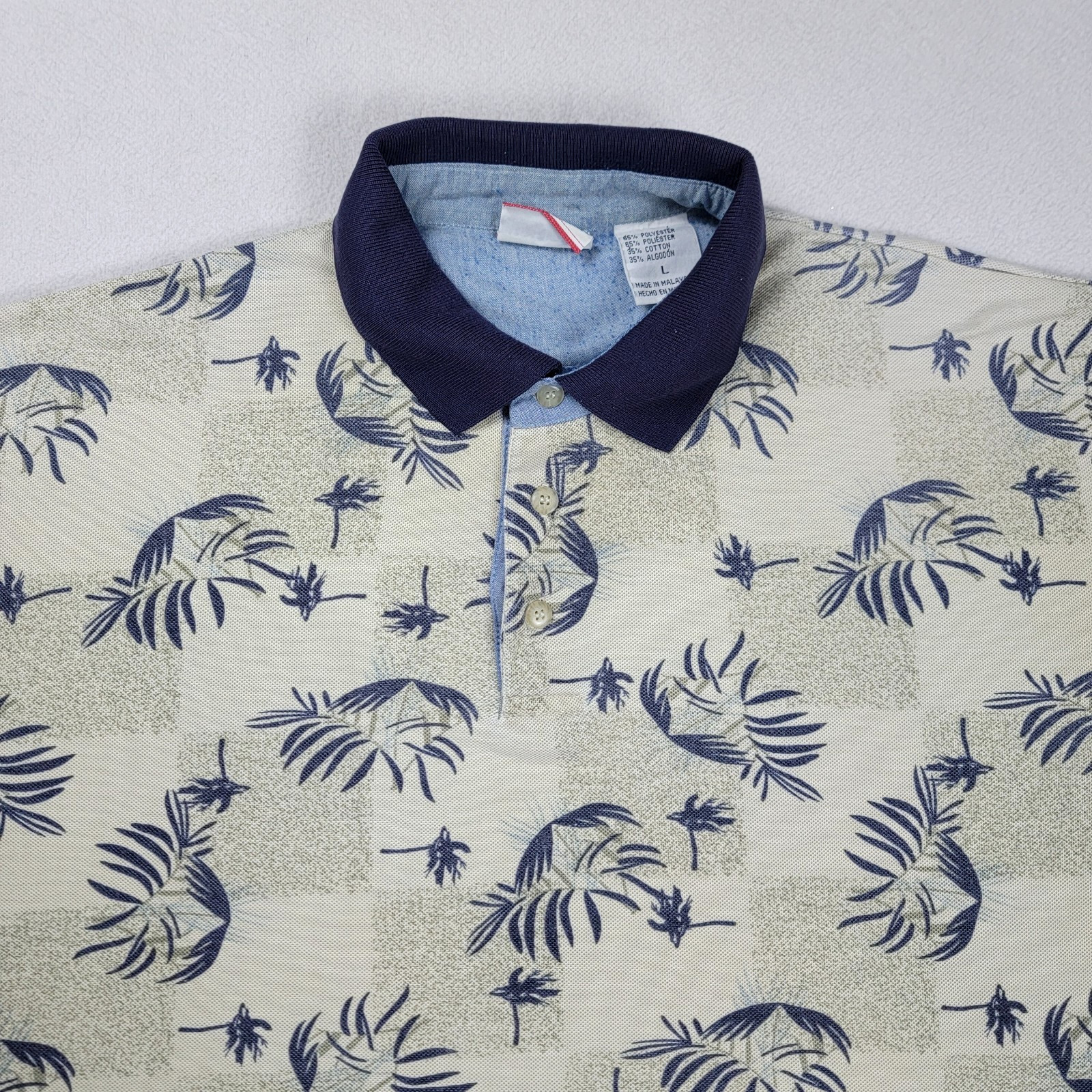 Vintage Bugle Boy Polo Shirt Men's Large Beige Tropical Short Sleeve Preppy 1990