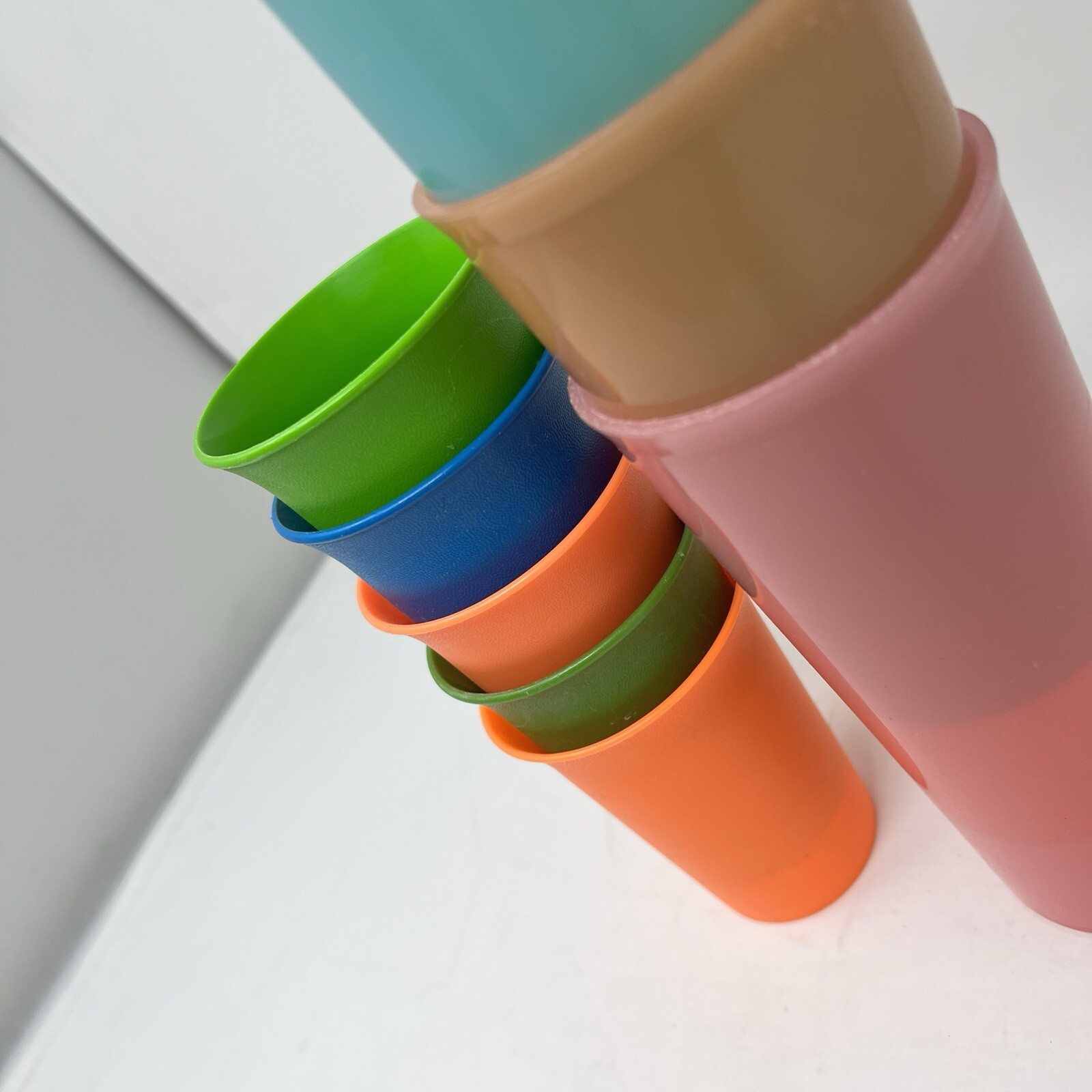 • Vintage Tupperware Sippy Cups Primary Color Bell Tumblers Pastel Set Lot Of 9